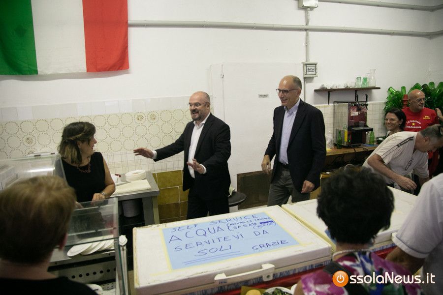 Venerdì sera, bagno di folla, per un Letta che non si risparmiato strette di mano e visita agli stand della Lucciola. Comprese una cena a base di ‘costine’ . Quasi una risposta nostrana alle ‘salamelle’ consumate da Salvini settimane fa alla Prateria di Domodossola.