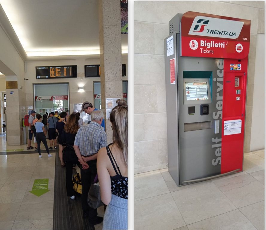 Stazione internazionale di Domodossola: code e macchinette per i biglietti che non funzionano.