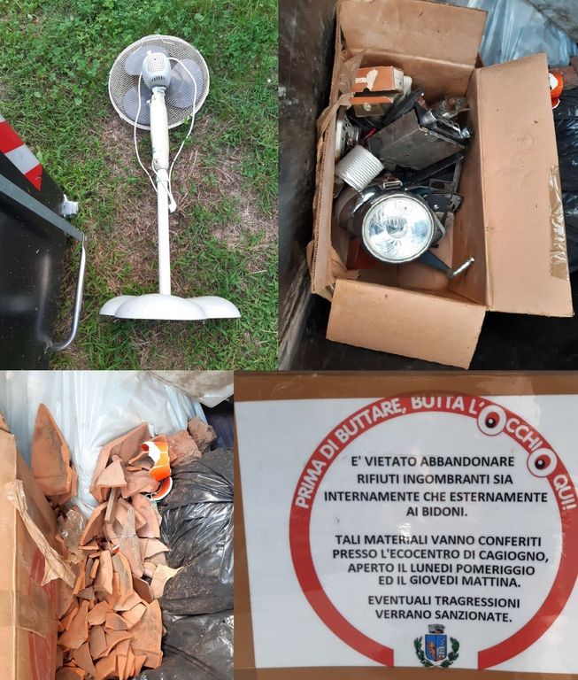 A meno che tu non torni sui tuoi passi, i chilogrammi di questi fanali, ventilatore, autoradio, cocci di terracotta buttati da te nell’indifferenziato, e che andavano invece smaltiti all’ecocentro di Cagiogno, verranno pagati da tutti noi con la tassa del prossimo anno. Qualche indizio l’hai lasciato e spero presto di riuscire a conoscerti, per rileggere insieme a te le chiare indicazioni apposte sui bidoni".