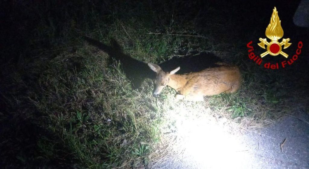 Intervento dei Vigili del Fuoco del distaccamento di Domodossola nella notte per mettere in salvo un capriolo ferito. L'animale si trovava sulla statale 659 della val Formazza all'altezza del bivio per Oira, immobile a terra e disorientato, probabilmente a seguito di un urto con un veicolo.