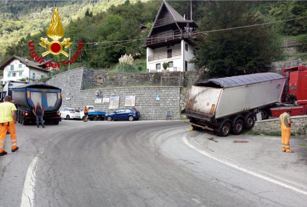 A Baceno, proprio sul bivio che porta all'Alpe Devero, un bilico di 300 quintali carico di catrame è rimasto incastrato con le ruote posteriori sul tornante. Sul posto è stato necessario l'intervento dell'autogru dei Vigili del fuoco di Verbania che, in collaborazione con i vigili volontari di Baceno, hanno liberato l'autotreno.