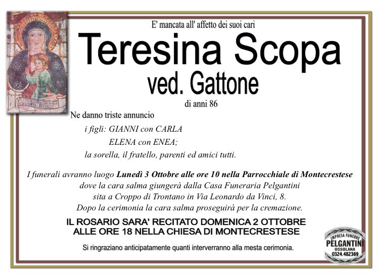 Teresina Scopa ved. Gattone di anni 86