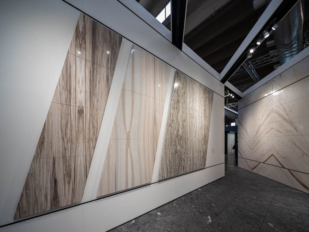 Simile ad un padiglione d’arte, l’installazione ha messo in scena opere in Palissandro® estratto dalla cava geologicamente policroma di Crevoladossola.