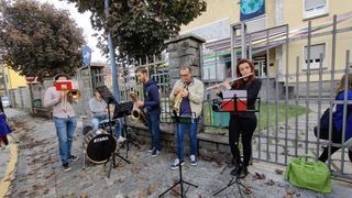 Un piccolo intermezzo musicale dimostrativo lunedì pomeriggio all’esterno della Scuola Primaria di Preglia. Lo hanno offerto a sorpresa ad alunni, insegnanti, genitori e nonni alcuni componenti della Musica di Oira per promuovere i corsi musicali dell'associazione.