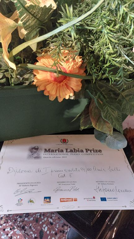 Inoltre è stato ammesso al biennio Magistrale presso il Conservatorio Pollini di Padova dove frequenterà il corso di Pianoforte con curvatura solistica concertistica, pur continuando ad essere seguito dalla sua insegnante Claudia Boz Direttrice dell’Accademia Pianistica giovani talenti di Alzate Brianza. Entrambe le commissioni dei concorsi hanno espresso sinceri complimenti ad Amir, che raggiunge così i 55 primi premi vinti finora, quasi tutti assoluti.