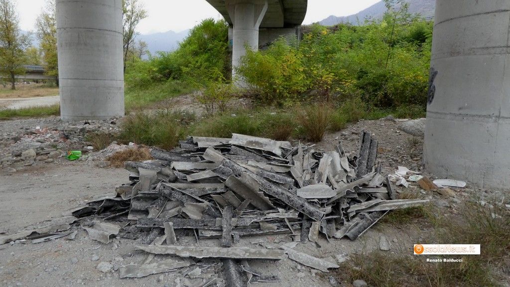 Incivili in azione allo svincolo della superstrada a Villadossola, lungo la strada per Beura. Sono coloro che hanno abbandonato alla base dei piloni che sostengono lo svincolo stradale diverso eternit, materiale pericoloso che andrebbe smaltito in apposite discariche. Approfittando della zona isolata e dalla scarsità di controlli gli incivili hanno lasciato i rifiuti accanto ad altri che già c’erano in precedenza. L’assenza di telecamere e, come dicevamo, la scarsità di controlli ha favorito questo compoprtamento incivile.