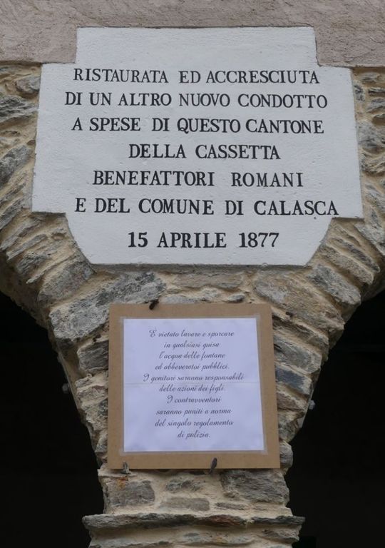 Dopo la breve cerimonia inaugurale svolta da don Fabrizio Cammelli e dalla sindaca Silvia Tipaldi, si è tenuto un momento di convivialità. Secondo una ricerca prodotta nel 2010 dagli alunni della scuola primaria di Calasca (ora soppressa), il lavatoio risale al 1706. Era diviso, com’era consuetudine per quei tempi, nella zona per le persone e in quella per gli animali.