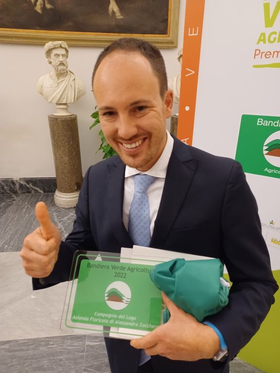 Alessandro Zacchera, titolare della Compagnia del Lago di Premosello Chiovenda, ha ritirato nel corso di una cerimonia in Campidoglio a Roma, il premio nazionale Bandiera Verde Agricoltura di Cia, XX edizione; al giovane imprenditore è stato anche conferito la Bandiera Verde Gold, assegnata al “campione dei campioni” tra tutti i vincitori di quest’anno.