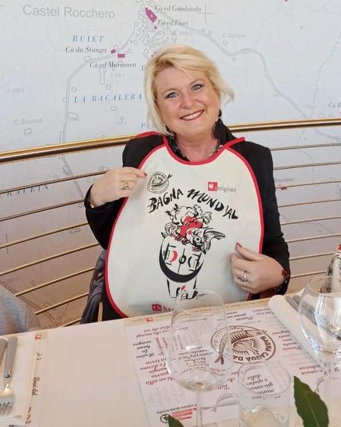 Premio Testa d’Aj anche a Carlotta Castelnovi, l’artista genovese che ben conosce Asti, che ha avuto il compito di illustrare con successo il bavagliolone di quest’anno con lo slogan «Bagna Mundial».