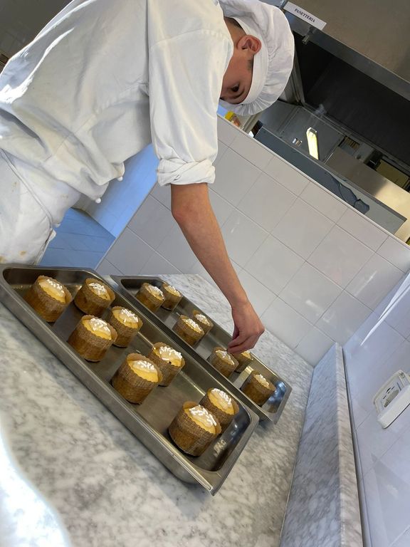 Con la stessa passione e la medesima cura dei dettagli, da cinque anni a questa parte Davide e Mariano hanno iniziato a produrre nel loro laboratorio, che è anche pastificio e panificio, panettoni e pandori. Quest’anno grazie alla collaborazione tra Mariano, anche insegnante di Tecniche di Cucina, e il Formont, è stato possibile proseguire con la realizzazione di pandori e panettoni come esperienza didattica.