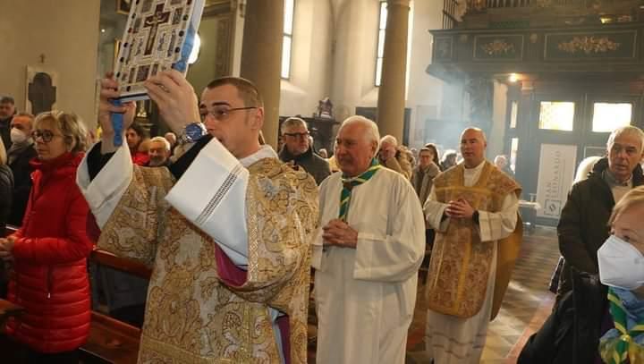 Ingresso ufficiale, con l’assunzione ufficiale della qualifica di parroco di San Leonardo e Santo Stefano, di don Riccardo Zaninetti. Accompagnato dal sindaco e dalla comunità parrocchiale di Domodossola, dove s’è occupato per 7 anni dell’oratorio; da quella di Sizzano, il paese dove ha risieduto con la famiglia fino all’ordinazione sacerdotale e accolto, a nome della città da quello dalla verbanese Silvia Marchionini. Sono stati i tre sindaci ad accoglierlo sul sagrato di San Leonardo.