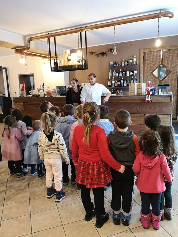 “Il 15 dicembre – spiegano le insegnanti- i bambini hanno potuto gustare prelibatezze dolci e salate con un sano succo d’arancia, hanno goduto del clima natalizio creato nell’ambiente. Con i bambini ringraziamo infinitamente Luca per l’invito, per aver pensato alle scuole e gli auguriamo un futuro pieno di soddisfazioni per il suo lavoro di cuoco nella Trattoria e di gestore nella bottega annessa: al paese questa apertura ridà vita e serve per facilitare le prime necessità nella spesa di tutti i giorni e per ricreare aggregazione tra gli abitanti”.