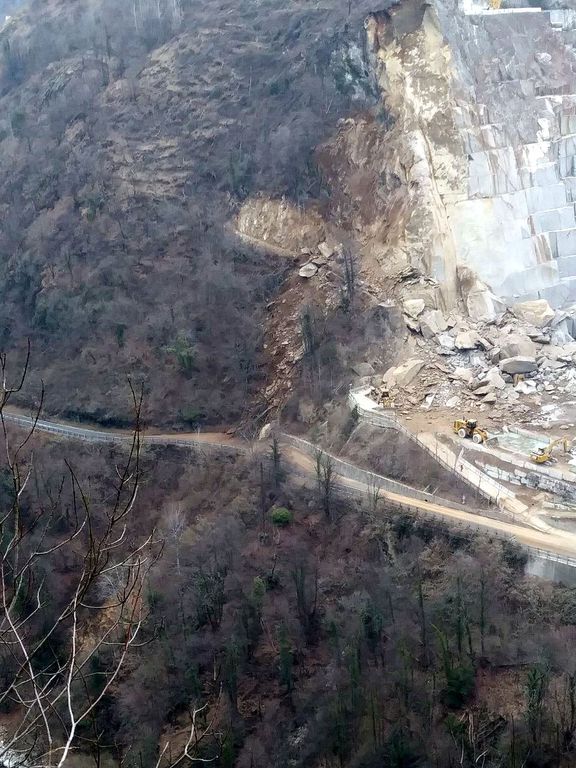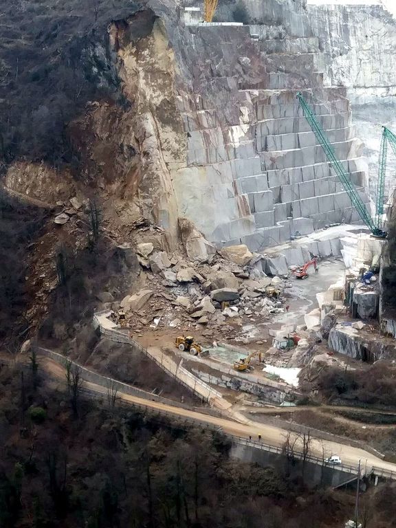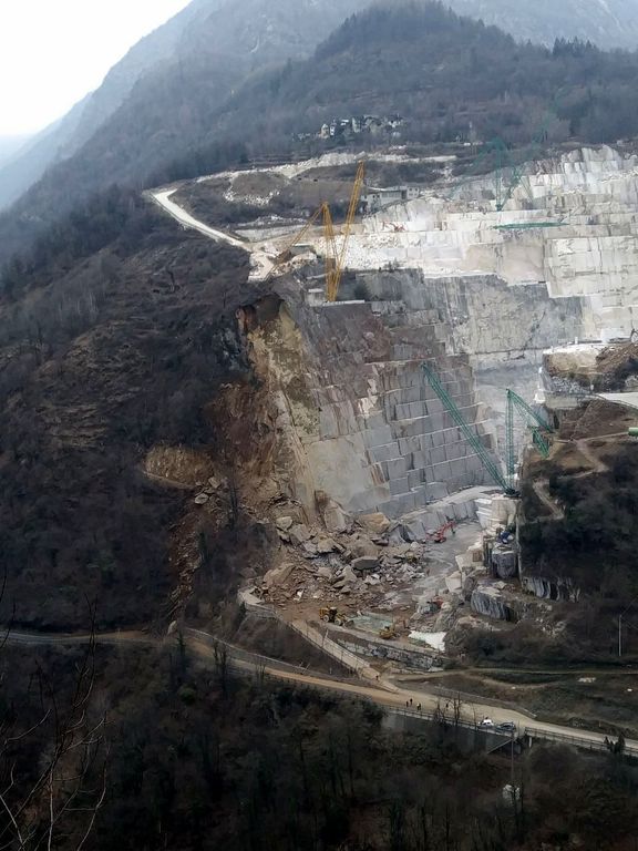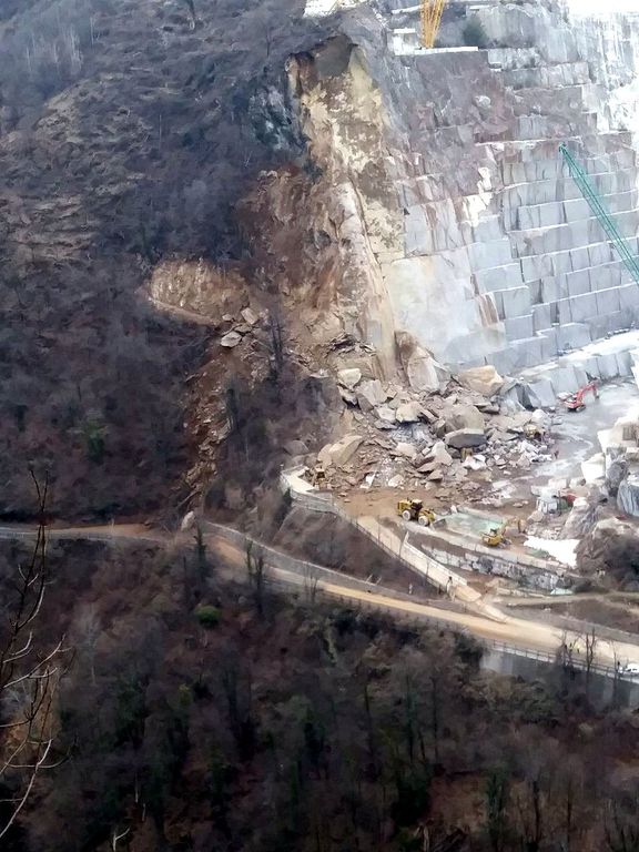 Un evento non prevedibile che per fortuna si è verificato di notte, quando in cava non lavorava nessuno.