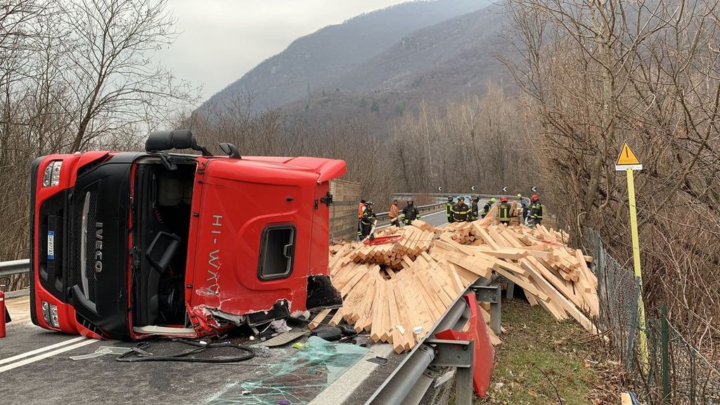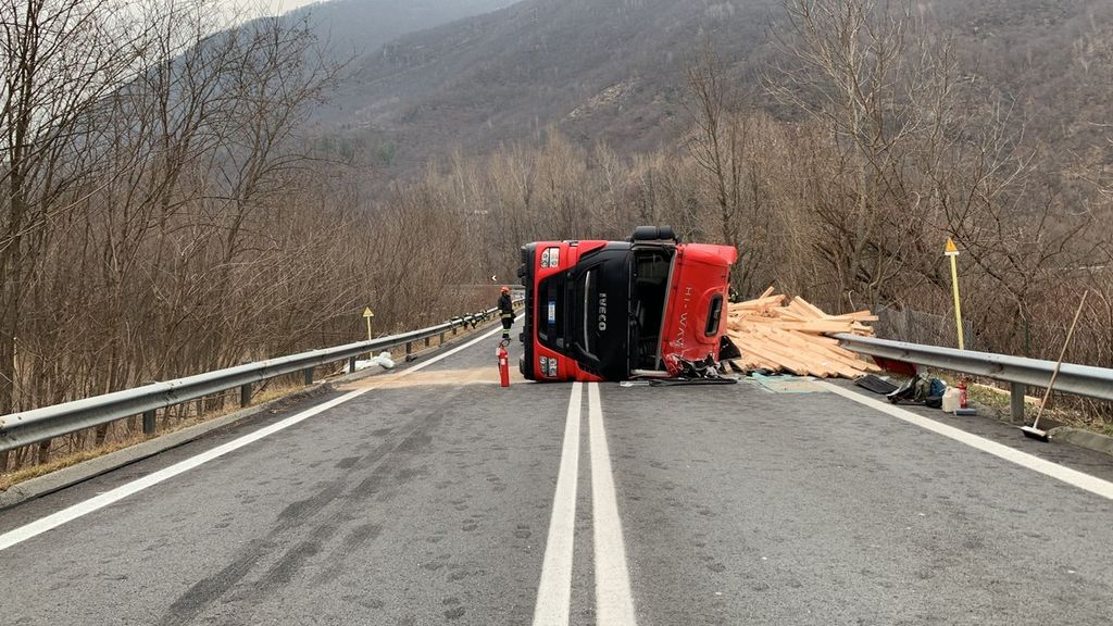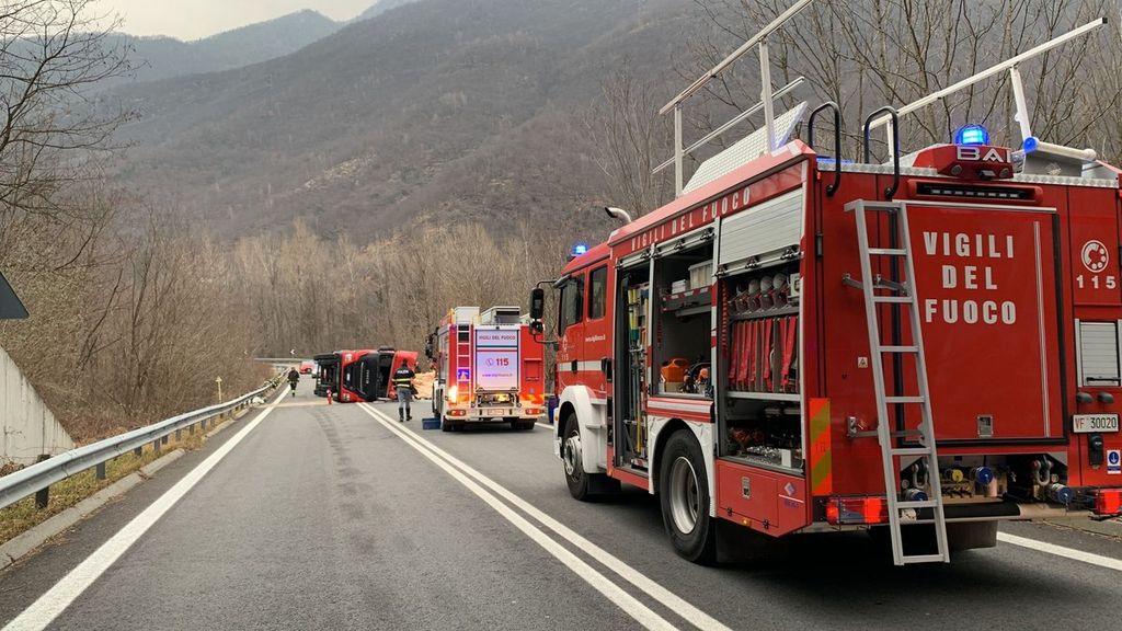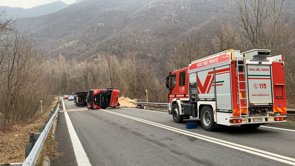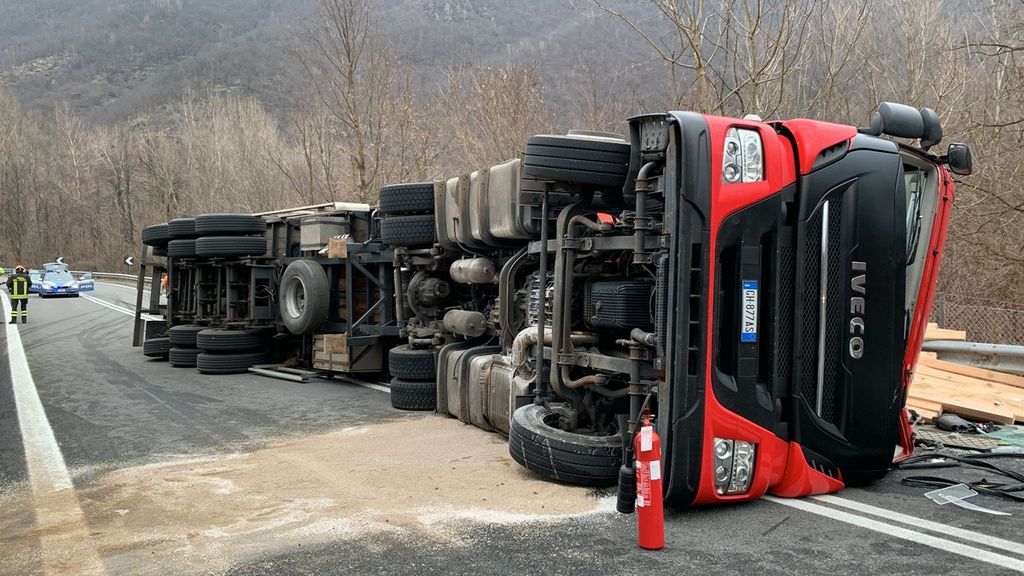 Incidente nel primo pomeriggio all'uscita della superstrada allo svincolo di Piedimulera. Un tir con un rimorchio carico di legna si è ribaltato sul fianco affrontando la curva dello svincolo in direzione sud. Nesssun altro veicolo è rimasto coinvolto e nessuno è rimasto ferito. Sul posto i Vigili del fuoco e la Polizia.