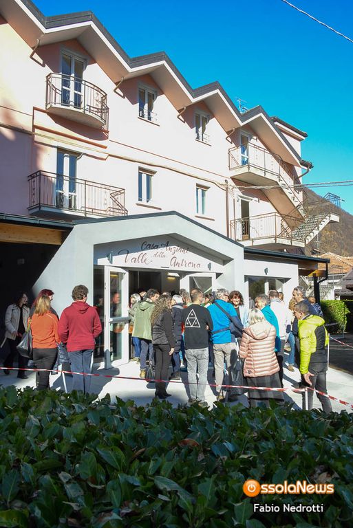 Taglio del nastro per la riqualificata Casa per Anziani della valle Antrona a Montescheno. La struttura, gestita dalla cooperativa La Bitta, prima dell’estate potrà usufruire di un totale di 40 posti letto, contro i 23 precedenti, e di una serie di servizi per le persone che vivono in valle e che hanno bisogno di socialità o di piccoli servizi di supporto. Dalla direttrice della struttura, Simonetta Valterio, un grazie a tutti i gruppi e le associazioni del paese, oltre che agli enti che hanno reso possibile questo importante ed imponente progetto.