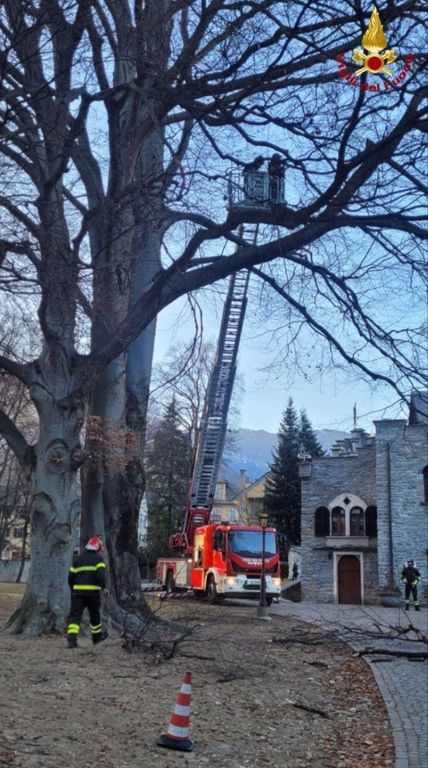 I vigili del fuoco, allertati dalla polizia municipale accortasi del pericolo, hanno rimosso i rami pericolanti che si erano staccati ed erano rimasti incastrati nella chioma. L'intervento consentirà di svolgere in completa sicurezza la manifestazione che si svolgerà nel parco nei prossimi giorni legata ad attività sportive praticate nella stagione invernale in val Vigezzo.