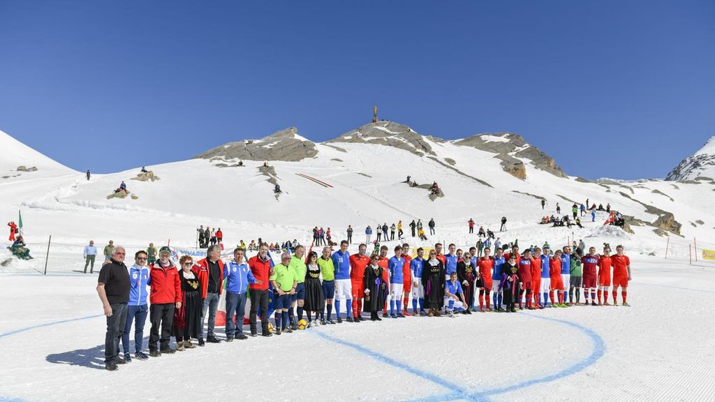 Che a Macugnaga si possa giocare a pallone sulla neve è ormai risaputo. Nel 2017 e nel 2019 infatti, la doppia amichevole tra Italia e Svizzera catturò l’attenzione di tutto il Paese: il campo da calcio, in dimensioni ridotte, fu ricavato ai 2800 metri di altitudine del monte Moro, a due passi col confine elvetico, con la parete Est del Monte Rosa sullo sfondo e i tifosi accalcati sulle tribune naturali di neve.