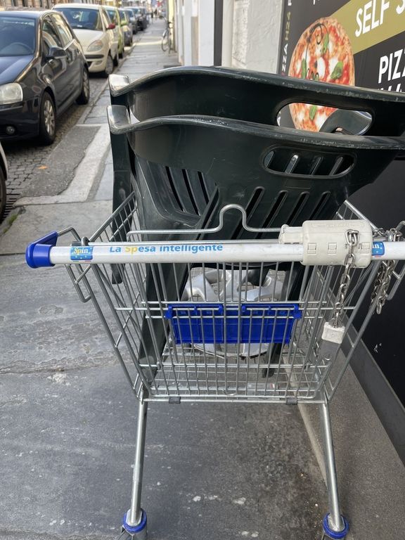 Il carrello è del supermercato Eurospin, ben distante dal luogo del suo ritrovamento.