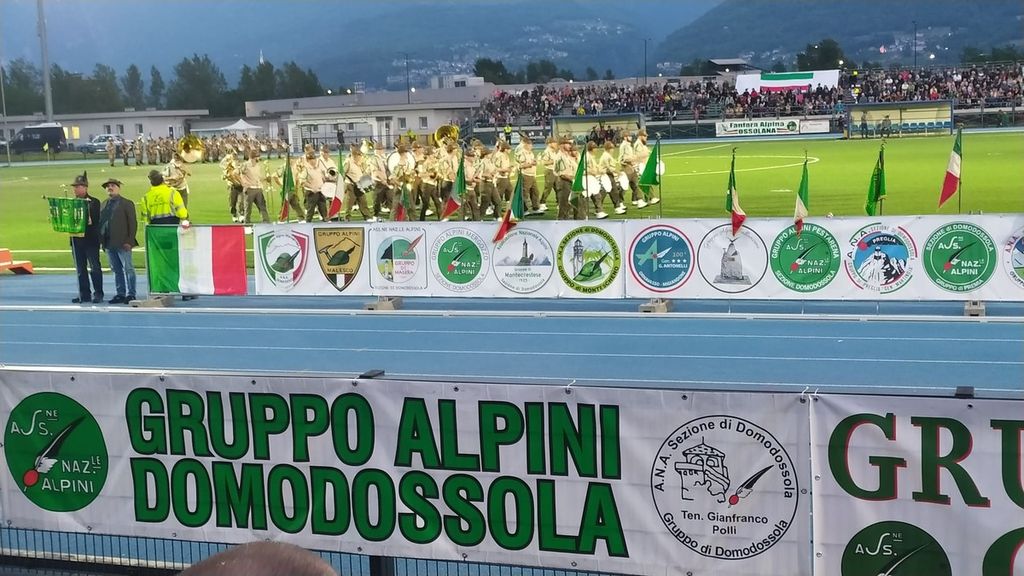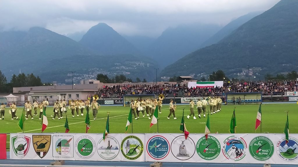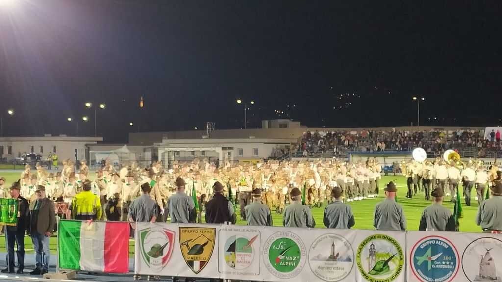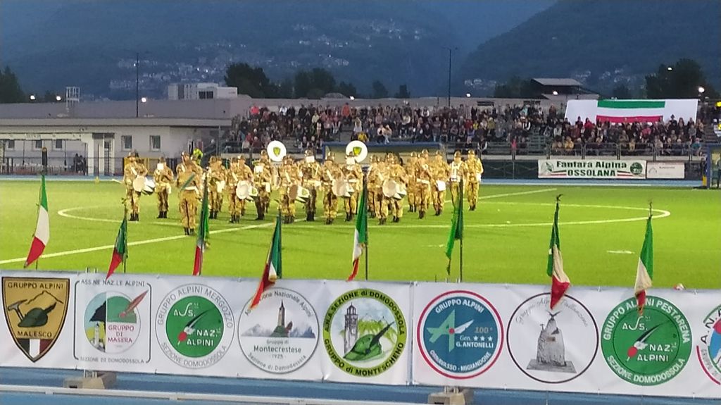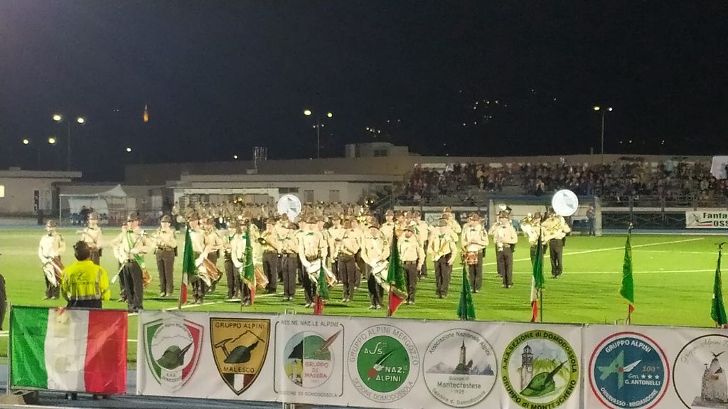 E' stato un vero e proprio spettacolo quello offerto ieri sera dalle fanfare: Alpina ossolana, Valchiesee, Asso in occasione delle celebrazioni del centenario della sezione di Domodossola dell'Ana. Il tempo nostante ripetuti tuoni e lampi ha permesso il normale svolgimento della serata e solo alla fine c'è stata qualche goccia di pioggia. Nel campo dello stadio Curotti si sono svolte una serie di coreografie realizzate in tempo di musica. “Una serata – ha detto al termine il responsabile della comunicazione della Fanfara Alpina Ossolana Gian Paolo Bellò – che rimarrà una pietra miliare della nostra storia”.