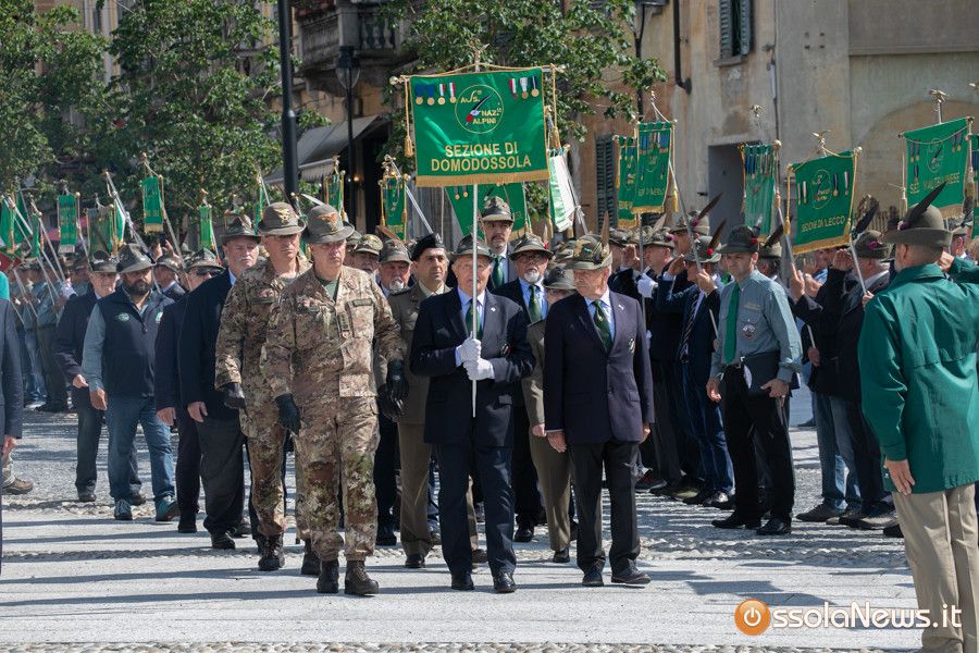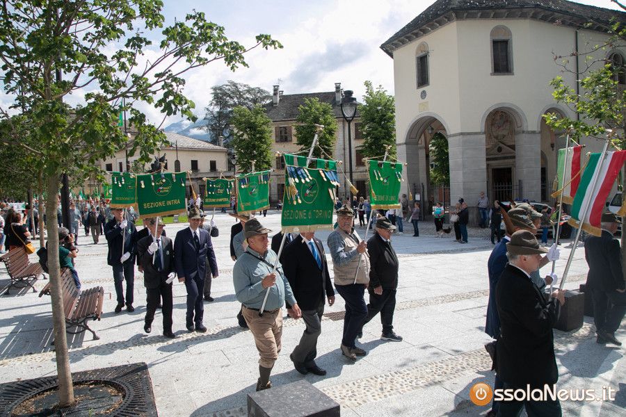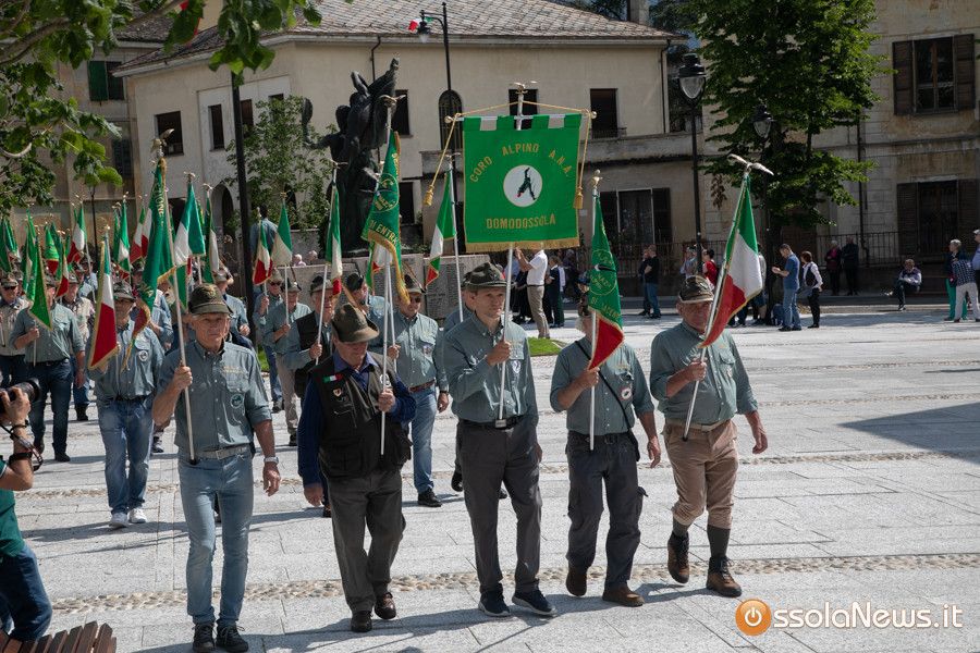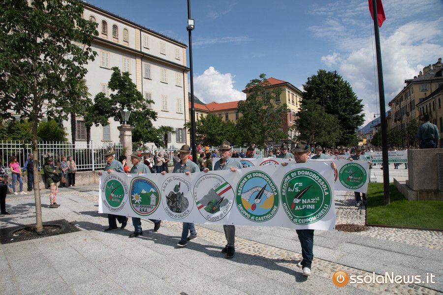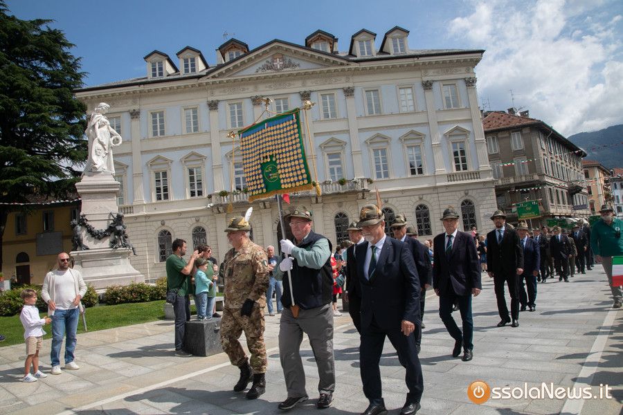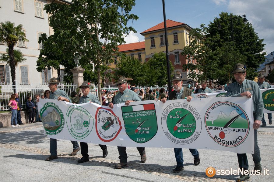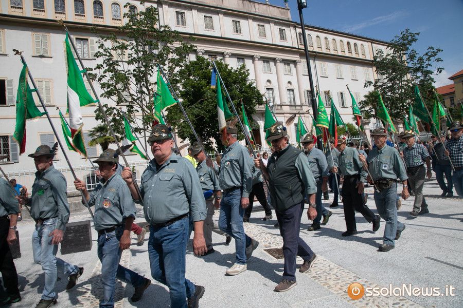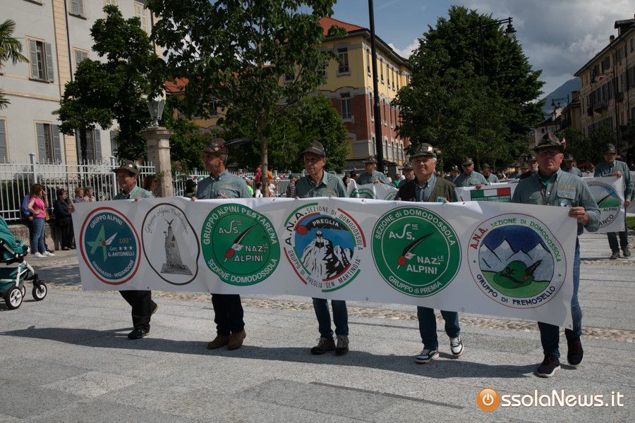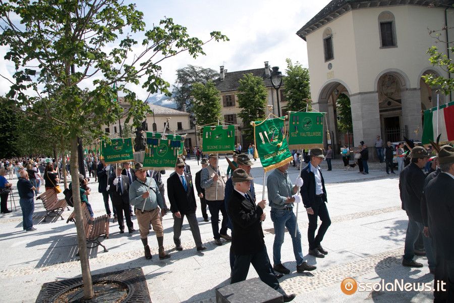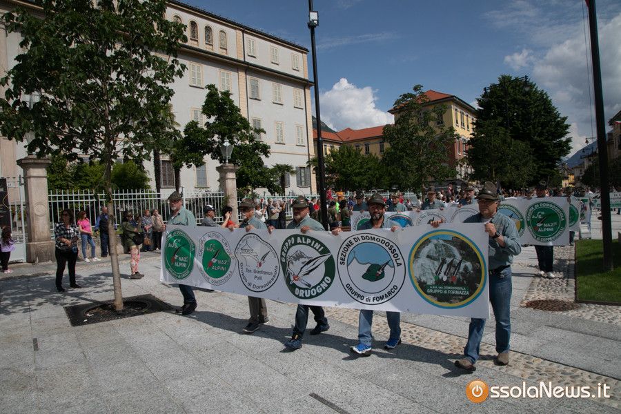 Dopo l'ammassamento in via Rosmini, l'alzabandiera e gli onori ai caduti e al labaro nazionale Ana, è partita la maestosa sfilata guidata dalla Fanfara Ossolana degli Alpini. Il lungo corteo composto da gagliardetti, gruppi e autorità è partito alla volta di piazza Mercato dove si sono tenuti i discorsi ufficiali. A fare gli onori di casa il presidente dell'Ana Domese Grossi e il presidente nazionale Favero. Dopo gli interventi delle autorità è seguito l'ammaina bandiera, con gli onori al labaro nazionale e a tutti i gonfaloni.