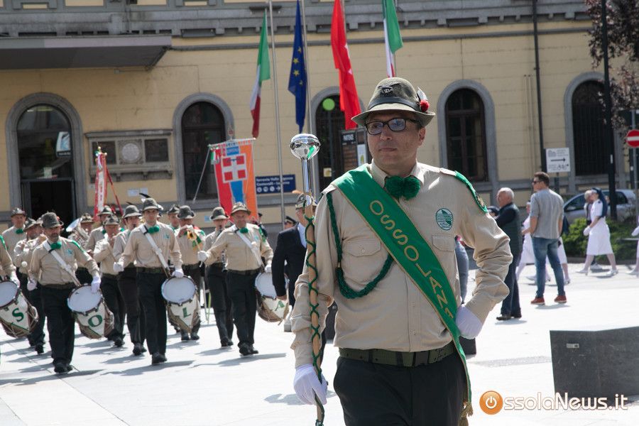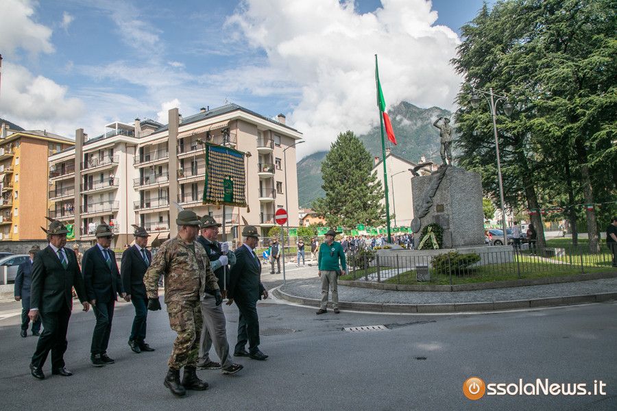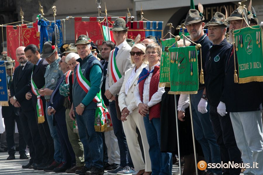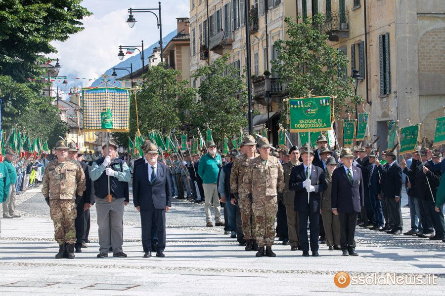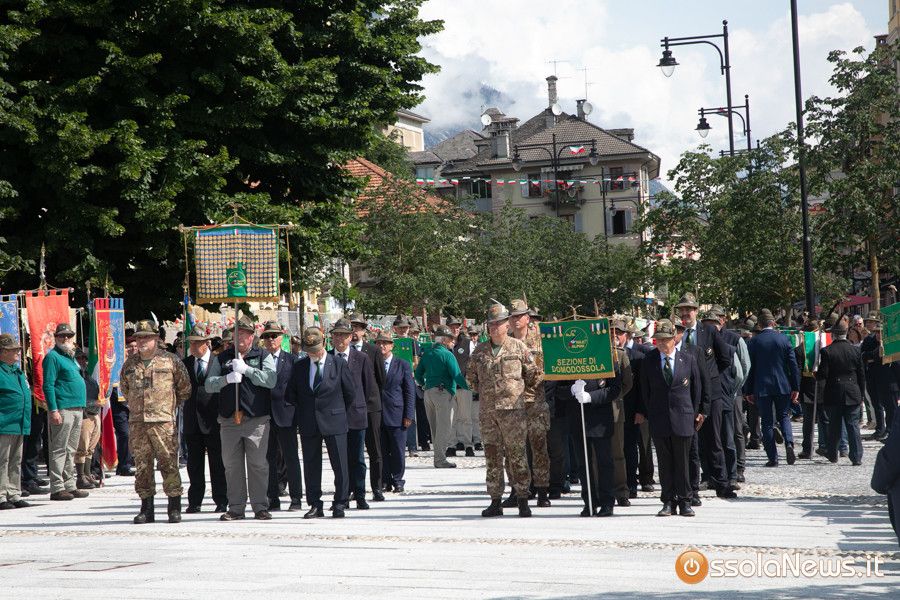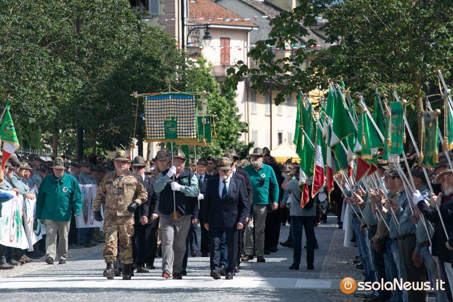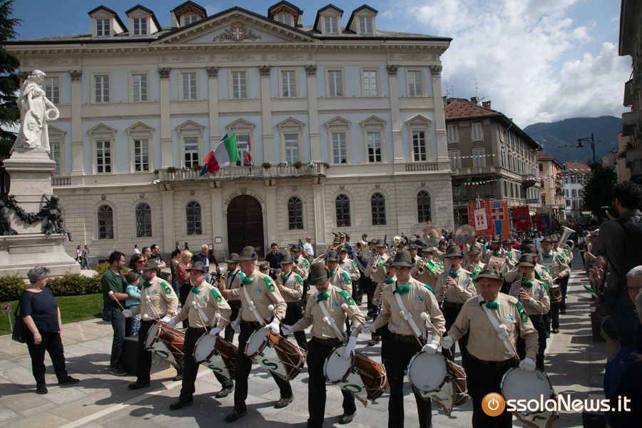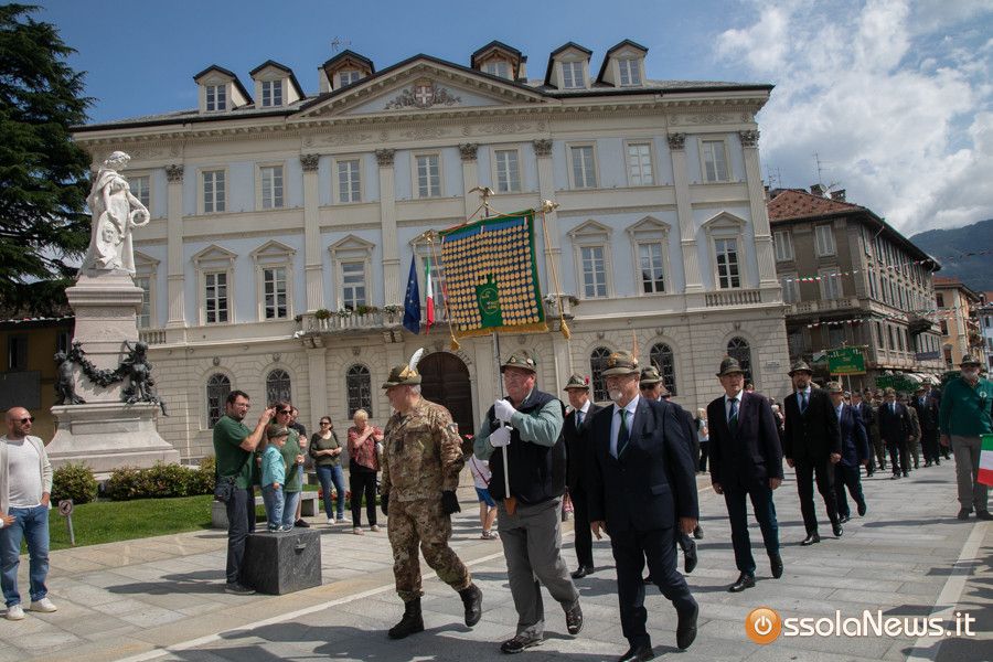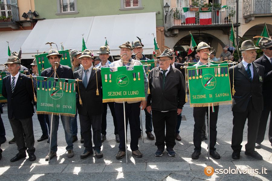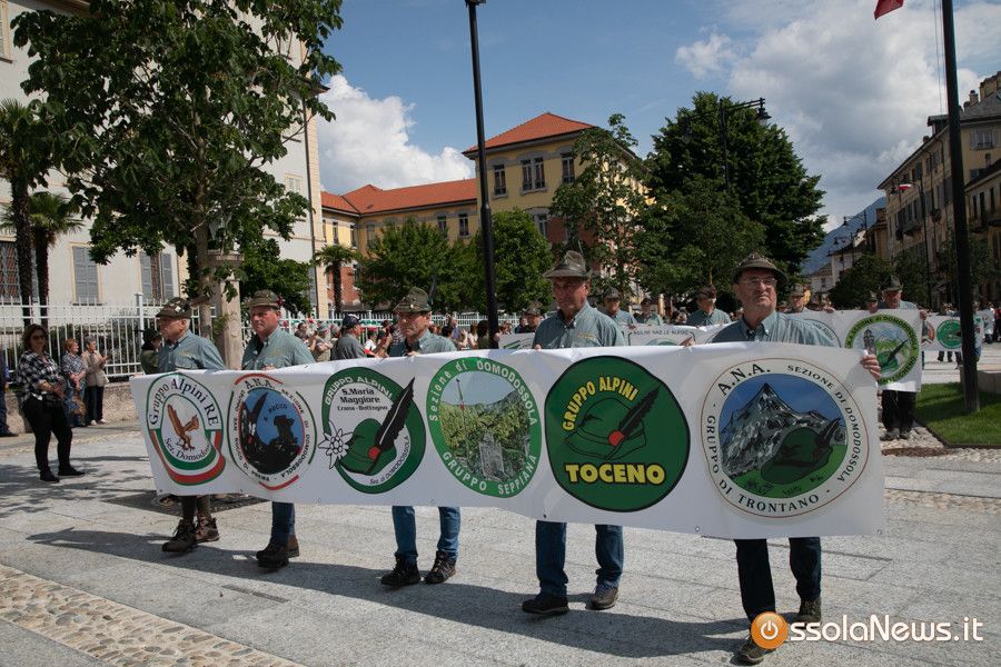 Dopo l'ammassamento in via Rosmini, l'alzabandiera e gli onori ai caduti e al labaro nazionale Ana, è partita la maestosa sfilata guidata dalla Fanfara Ossolana degli Alpini. Il lungo corteo composto da gagliardetti, gruppi e autorità è partito alla volta di piazza Mercato dove si sono tenuti i discorsi ufficiali. A fare gli onori di casa il presidente dell'Ana Domese Grossi e il presidente nazionale Favero. Dopo gli interventi delle autorità è seguito l'ammaina bandiera, con gli onori al labaro nazionale e a tutti i gonfaloni.