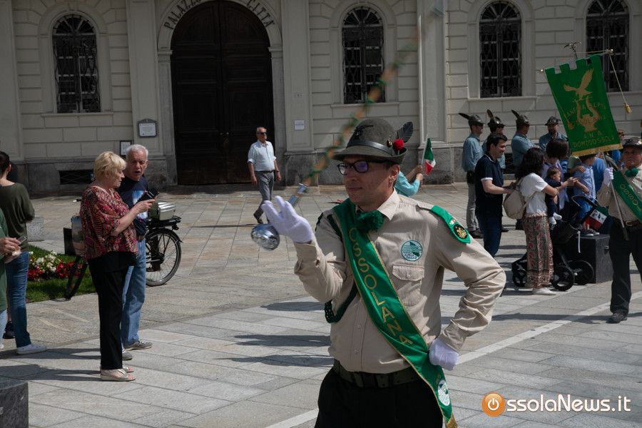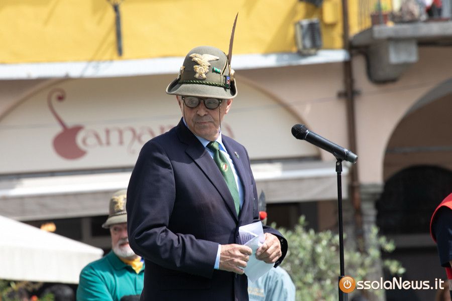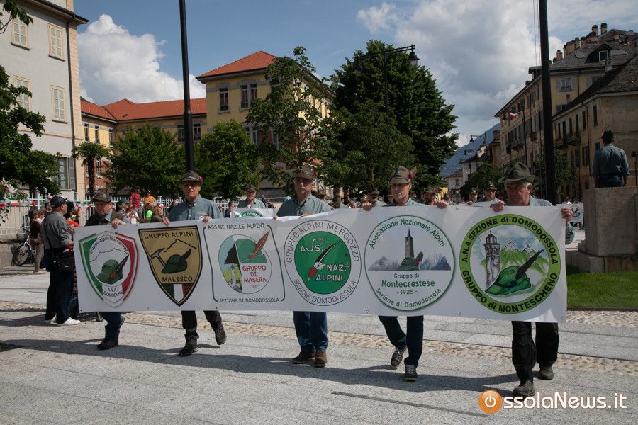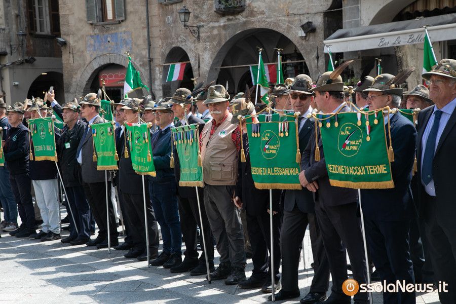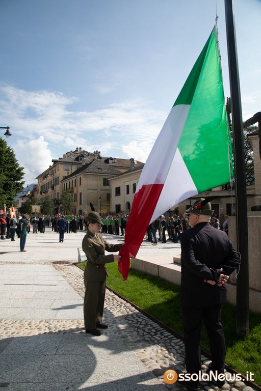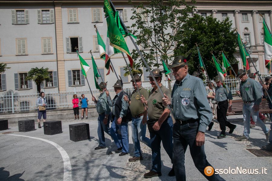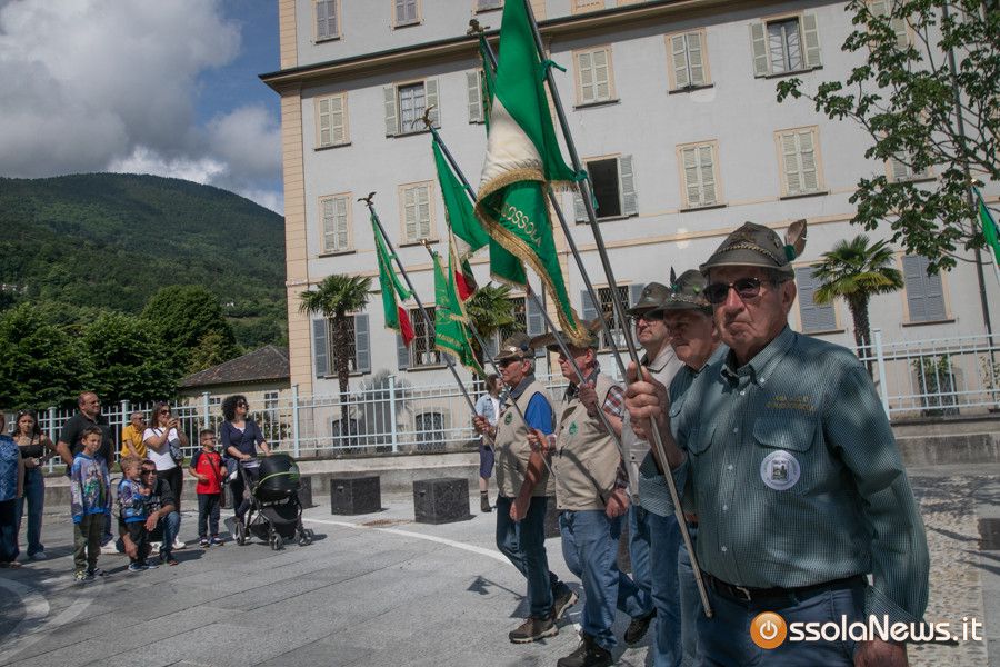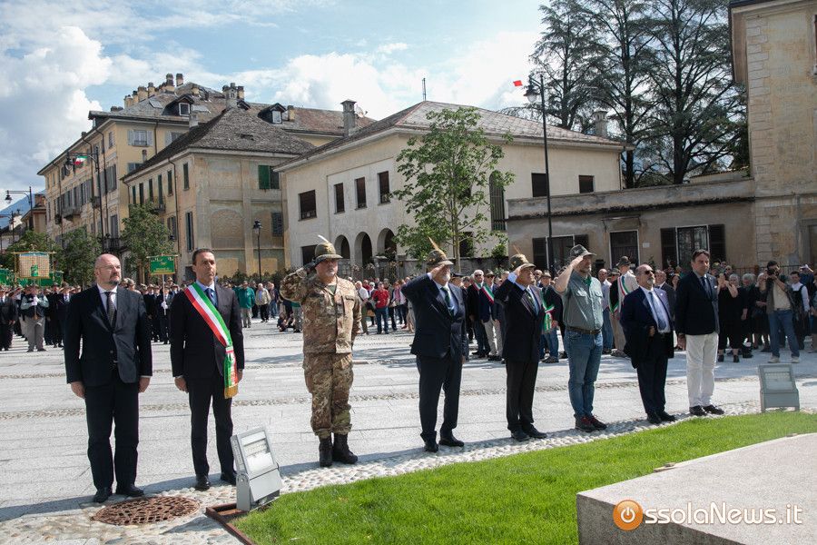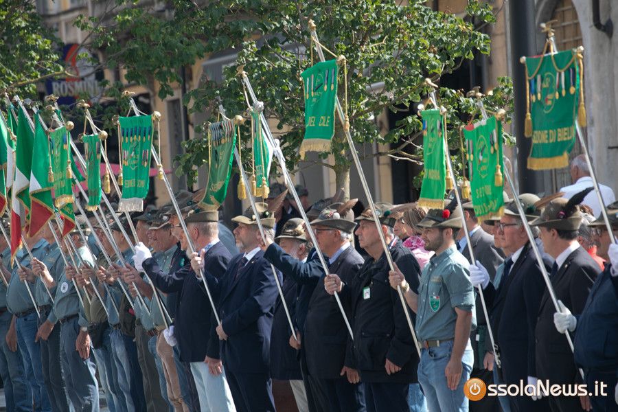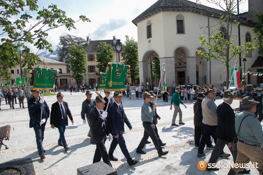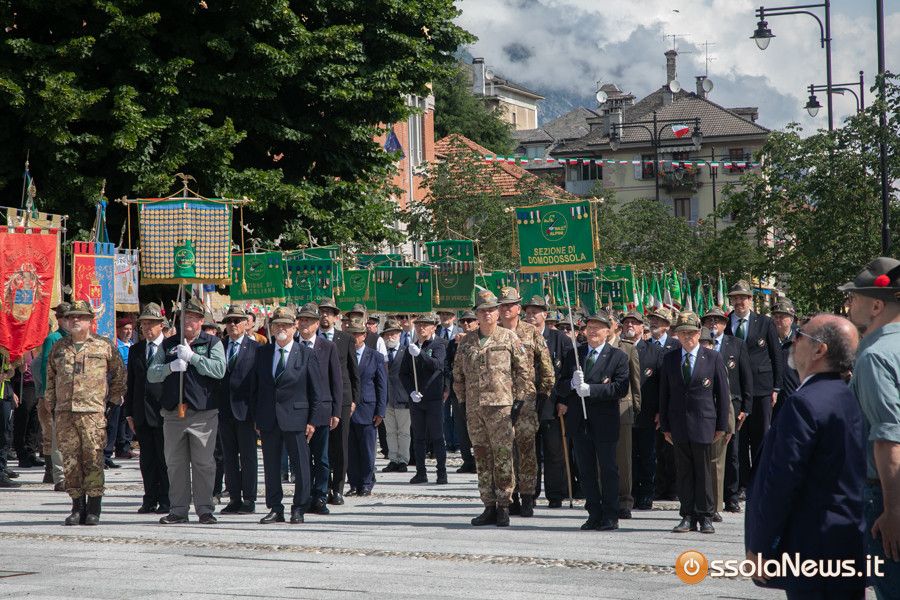 Dopo l'ammassamento in via Rosmini, l'alzabandiera e gli onori ai caduti e al labaro nazionale Ana, è partita la maestosa sfilata guidata dalla Fanfara Ossolana degli Alpini. Il lungo corteo composto da gagliardetti, gruppi e autorità è partito alla volta di piazza Mercato dove si sono tenuti i discorsi ufficiali. A fare gli onori di casa il presidente dell'Ana Domese Grossi e il presidente nazionale Favero. Dopo gli interventi delle autorità è seguito l'ammaina bandiera, con gli onori al labaro nazionale e a tutti i gonfaloni.