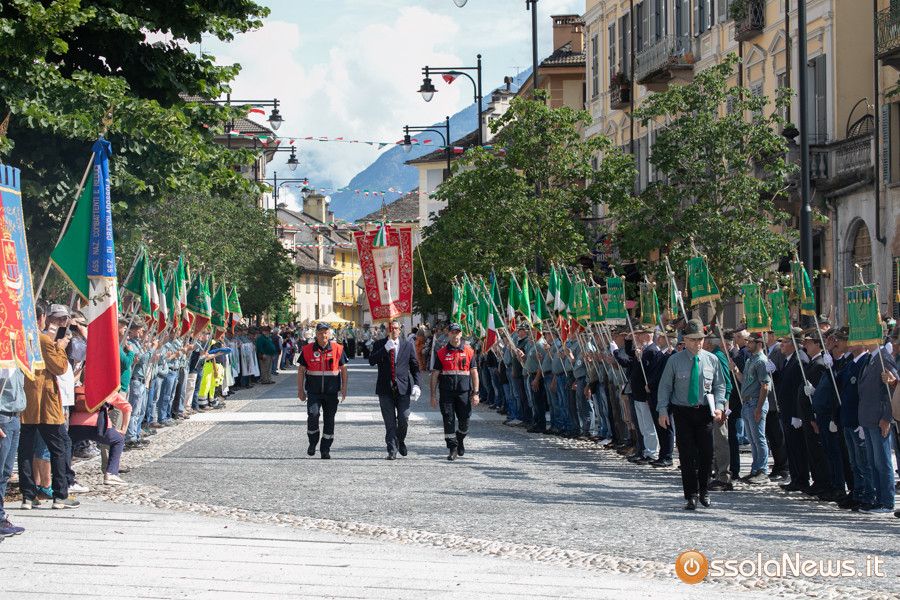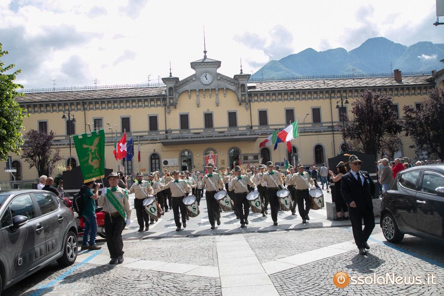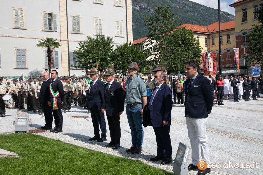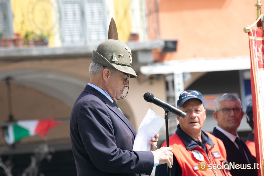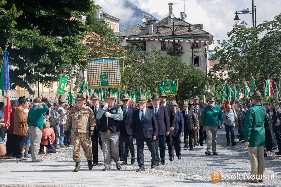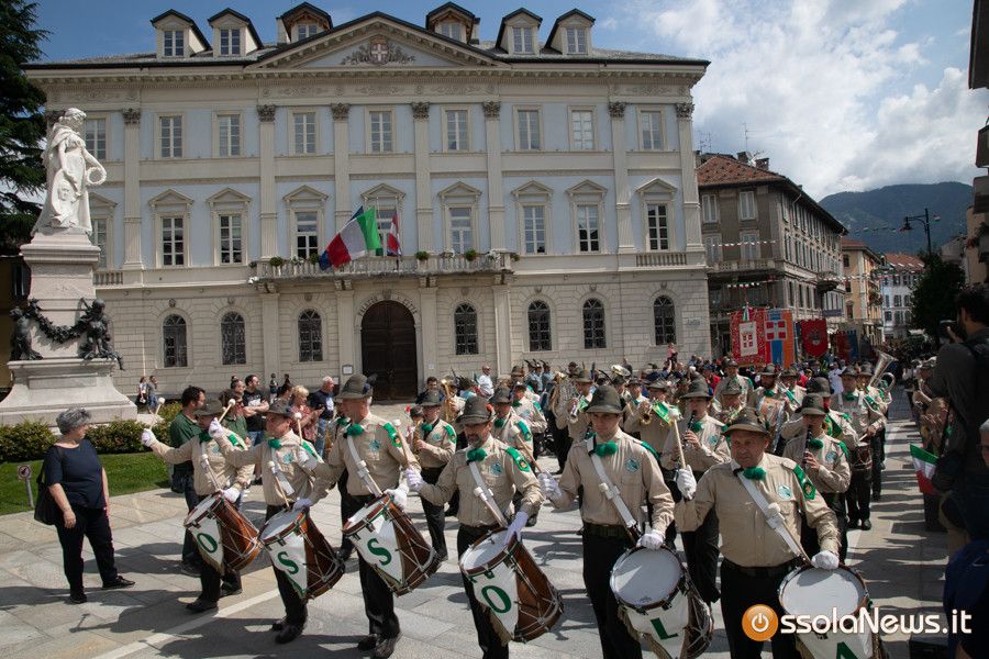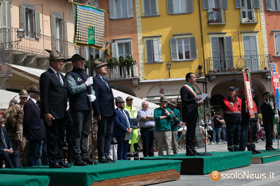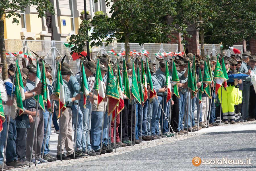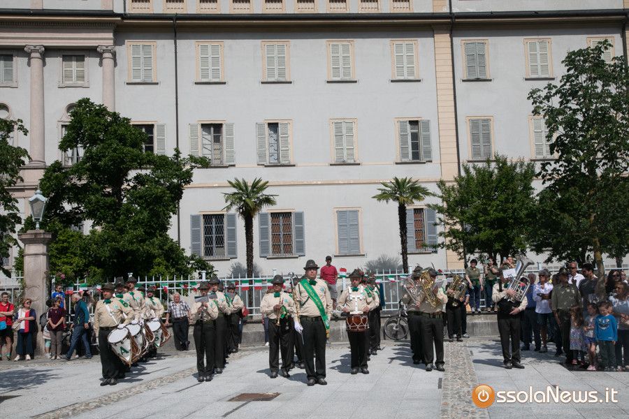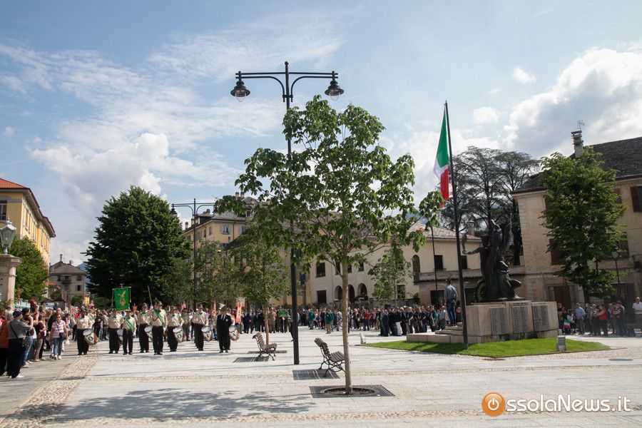 Dopo l'ammassamento in via Rosmini, l'alzabandiera e gli onori ai caduti e al labaro nazionale Ana, è partita la maestosa sfilata guidata dalla Fanfara Ossolana degli Alpini. Il lungo corteo composto da gagliardetti, gruppi e autorità è partito alla volta di piazza Mercato dove si sono tenuti i discorsi ufficiali. A fare gli onori di casa il presidente dell'Ana Domese Grossi e il presidente nazionale Favero. Dopo gli interventi delle autorità è seguito l'ammaina bandiera, con gli onori al labaro nazionale e a tutti i gonfaloni.