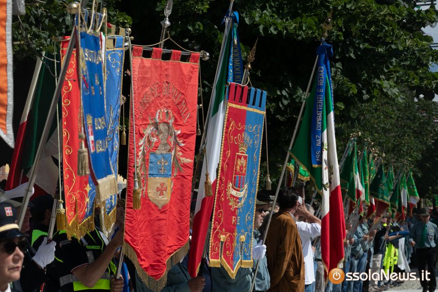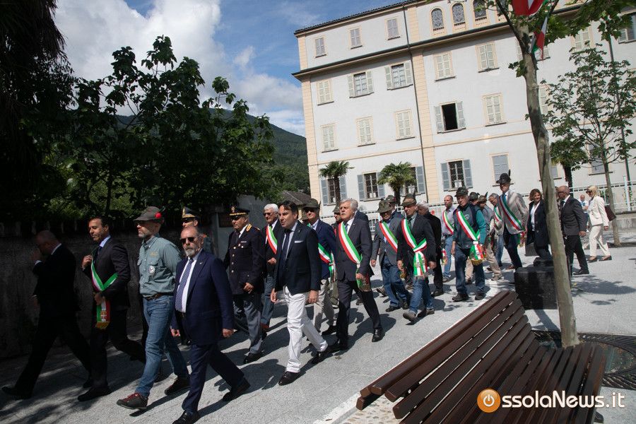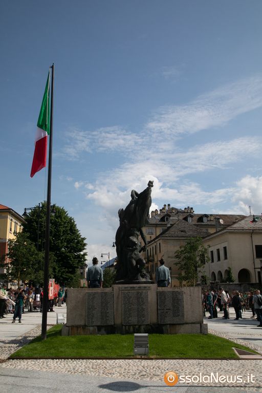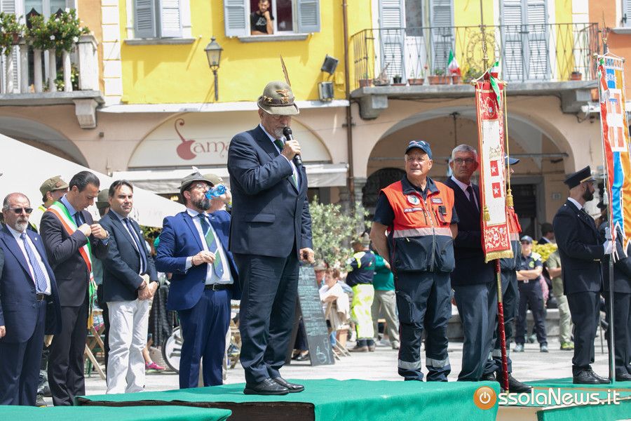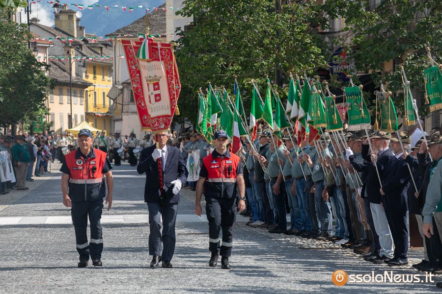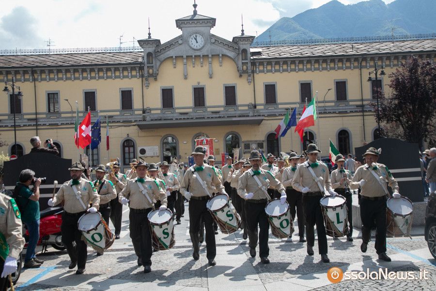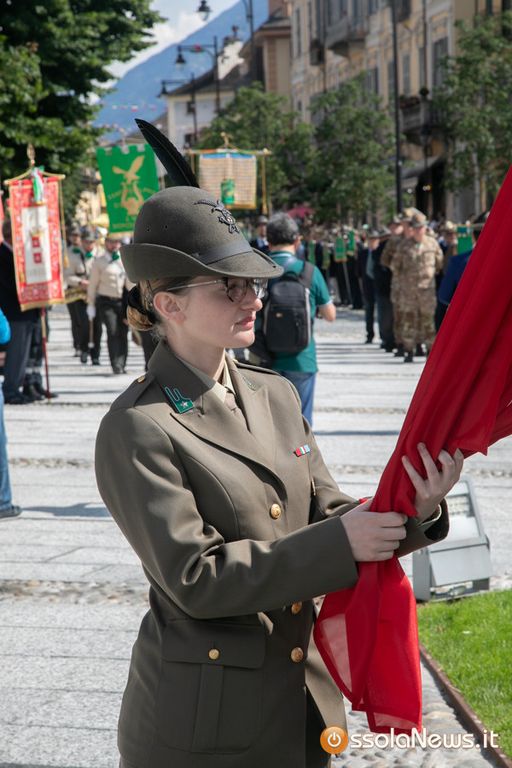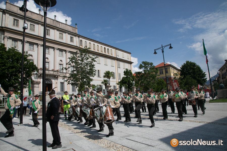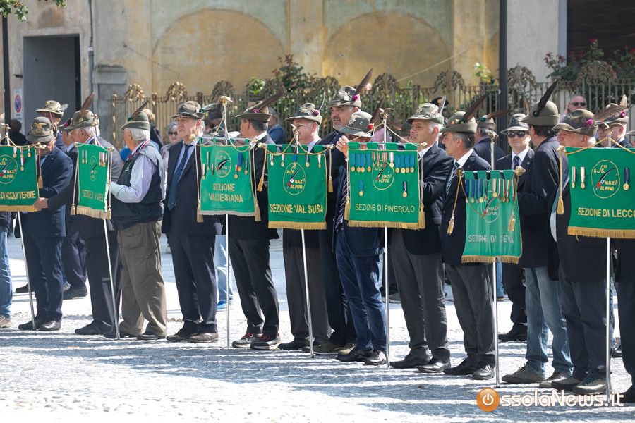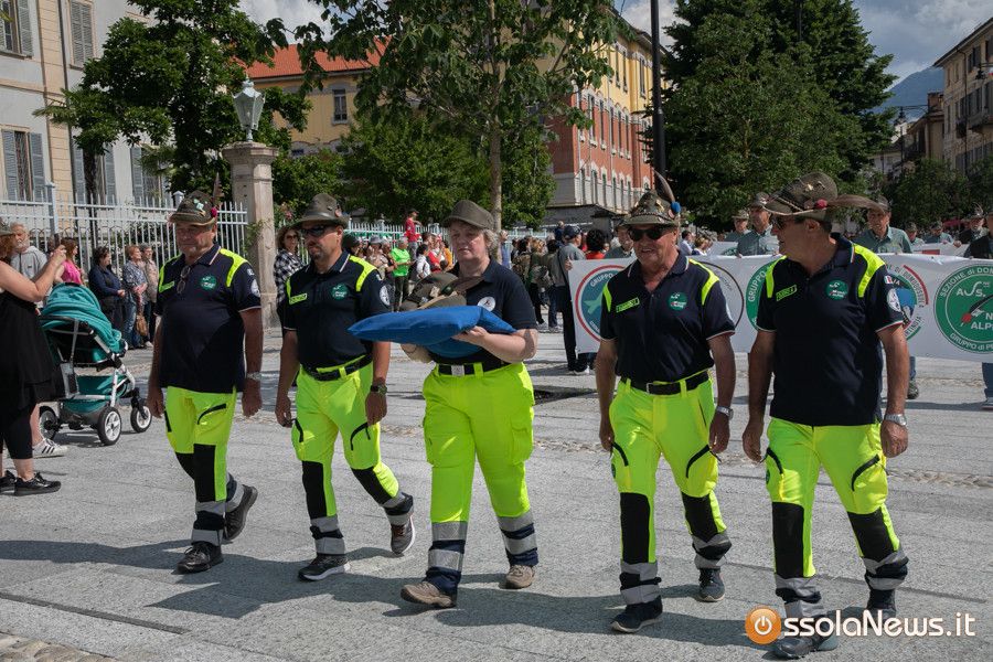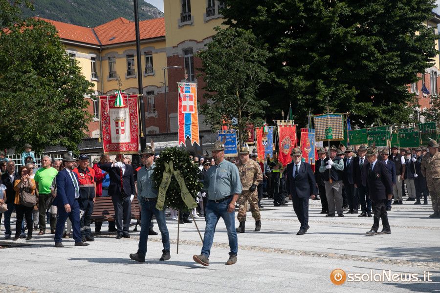Dopo l'ammassamento in via Rosmini, l'alzabandiera e gli onori ai caduti e al labaro nazionale Ana, è partita la maestosa sfilata guidata dalla Fanfara Ossolana degli Alpini. Il lungo corteo composto da gagliardetti, gruppi e autorità è partito alla volta di piazza Mercato dove si sono tenuti i discorsi ufficiali. A fare gli onori di casa il presidente dell'Ana Domese Grossi e il presidente nazionale Favero. Dopo gli interventi delle autorità è seguito l'ammaina bandiera, con gli onori al labaro nazionale e a tutti i gonfaloni.