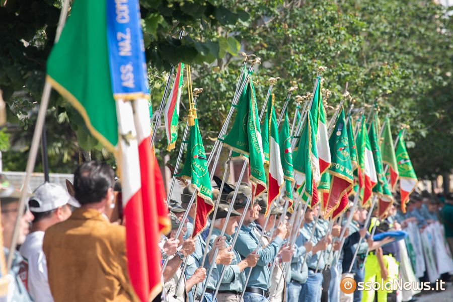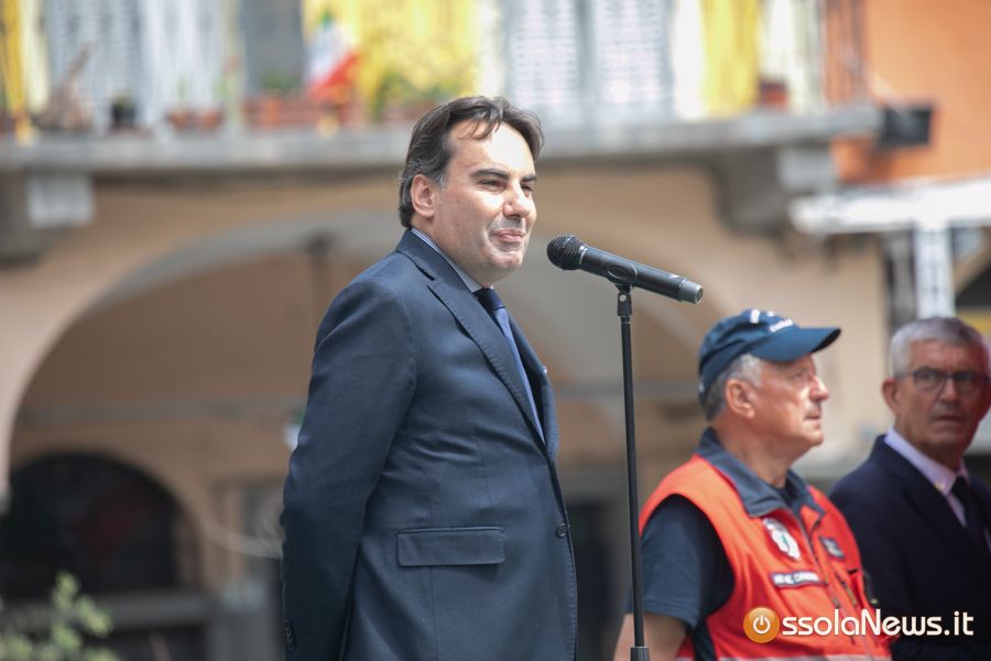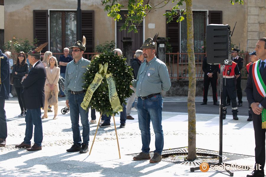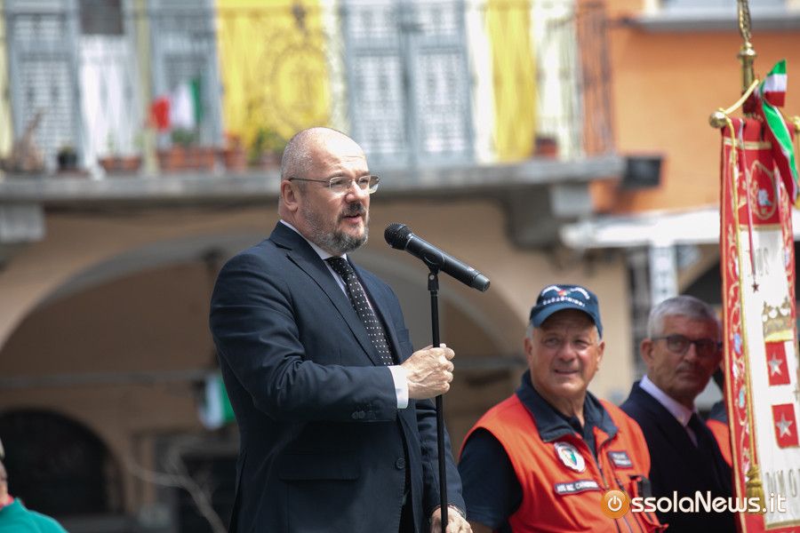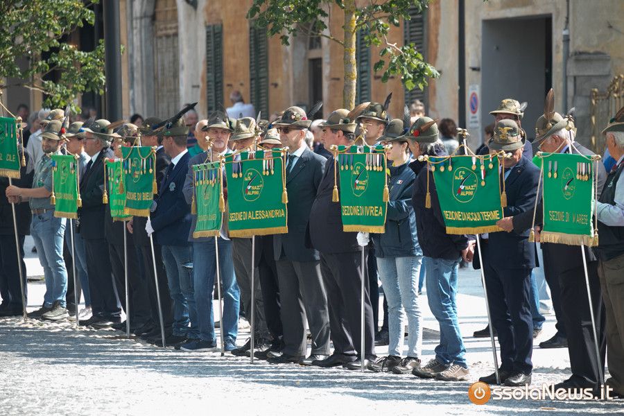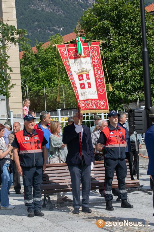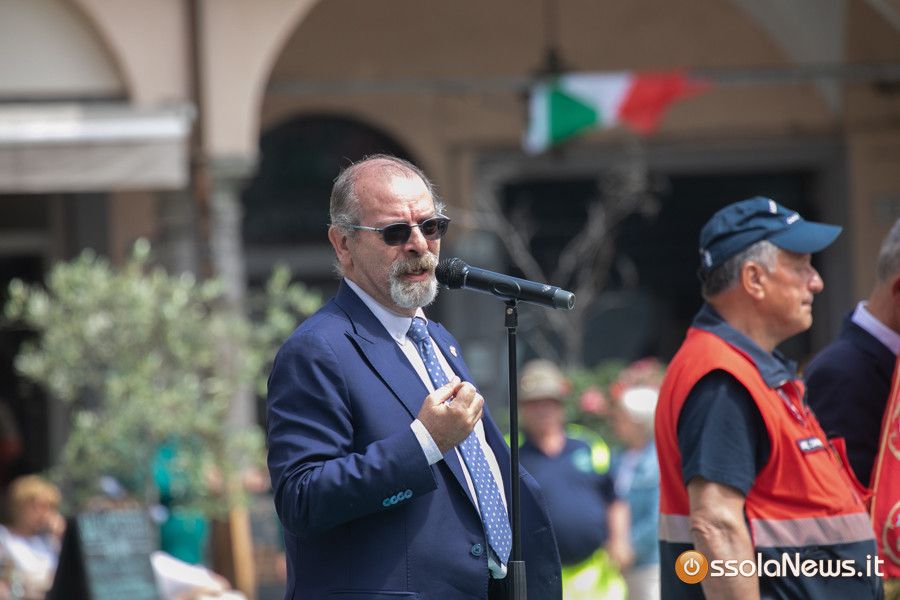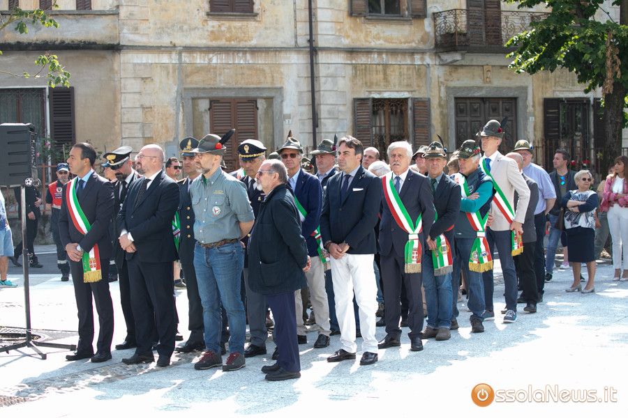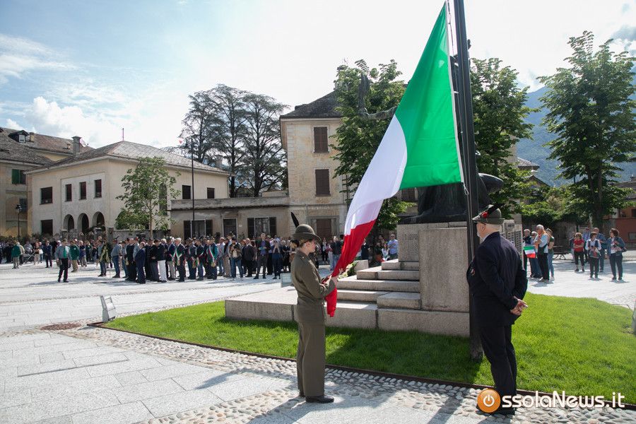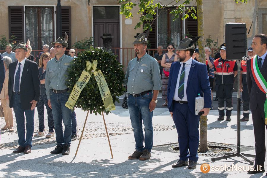 Dopo l'ammassamento in via Rosmini, l'alzabandiera e gli onori ai caduti e al labaro nazionale Ana, è partita la maestosa sfilata guidata dalla Fanfara Ossolana degli Alpini. Il lungo corteo composto da gagliardetti, gruppi e autorità è partito alla volta di piazza Mercato dove si sono tenuti i discorsi ufficiali. A fare gli onori di casa il presidente dell'Ana Domese Grossi e il presidente nazionale Favero. Dopo gli interventi delle autorità è seguito l'ammaina bandiera, con gli onori al labaro nazionale e a tutti i gonfaloni.