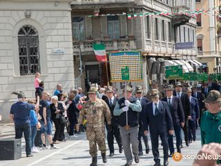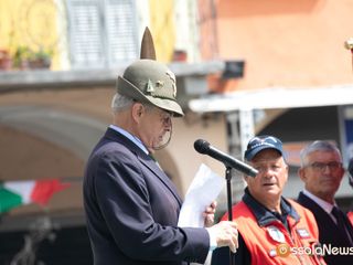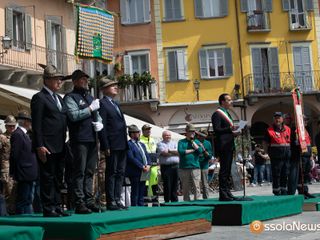 Dopo l'ammassamento in via Rosmini, l'alzabandiera e gli onori ai caduti e al labaro nazionale Ana, è partita la maestosa sfilata guidata dalla Fanfara Ossolana degli Alpini. Il lungo corteo composto da gagliardetti, gruppi e autorità è partito alla volta di piazza Mercato dove si sono tenuti i discorsi ufficiali. A fare gli onori di casa il presidente dell'Ana Domese Grossi e il presidente nazionale Favero. Dopo gli interventi delle autorità è seguito l'ammaina bandiera, con gli onori al labaro nazionale e a tutti i gonfaloni.