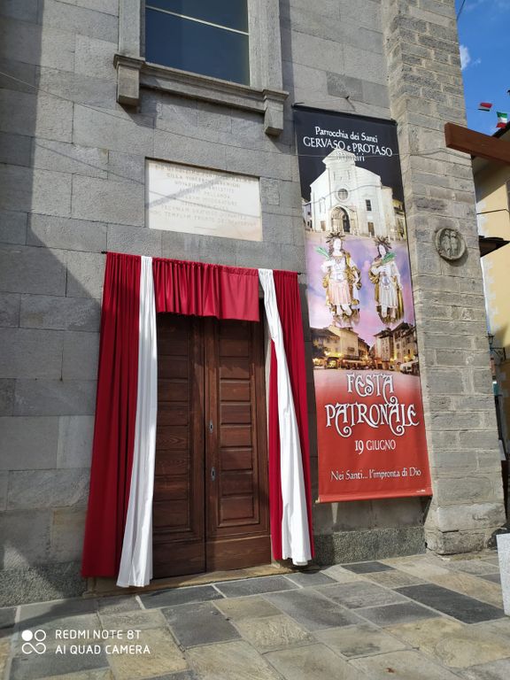 La chiesa Collegiata è ormai vestita a festa patronale dei Santi Gervaso e Protaso. Davanti agli ingressi sono stati esposi i drappi bianchi e rossi e lo striscione con l’effigie dei Santi Patroni; anche all’interno della chiesa sono stati messi i drappi. Dal 10 giugno è iniziata la novena ai Santi Patroni.