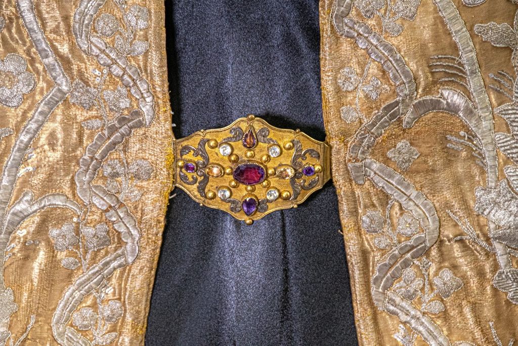 Il manto funebre di Luigi XIV è decorato con oro e argento su fondo di velluto nero, ornato con sei medaglioni ricamati in gobelin, che raffigurano scene della Passione e della Resurrezione di Cristo, mentre dallo storico manto nuziale di Maria Antonietta è stato ricavato un piviale ricamato con fiori. Il “mantello della Regina” è utilizzato dal parroco di Craveggia esclusivamente nelle celebrazioni solenni, il 25 luglio in occasione della festa patronale e la terza domenica di settembre per la ricorrenza della Madonna Addolorata.