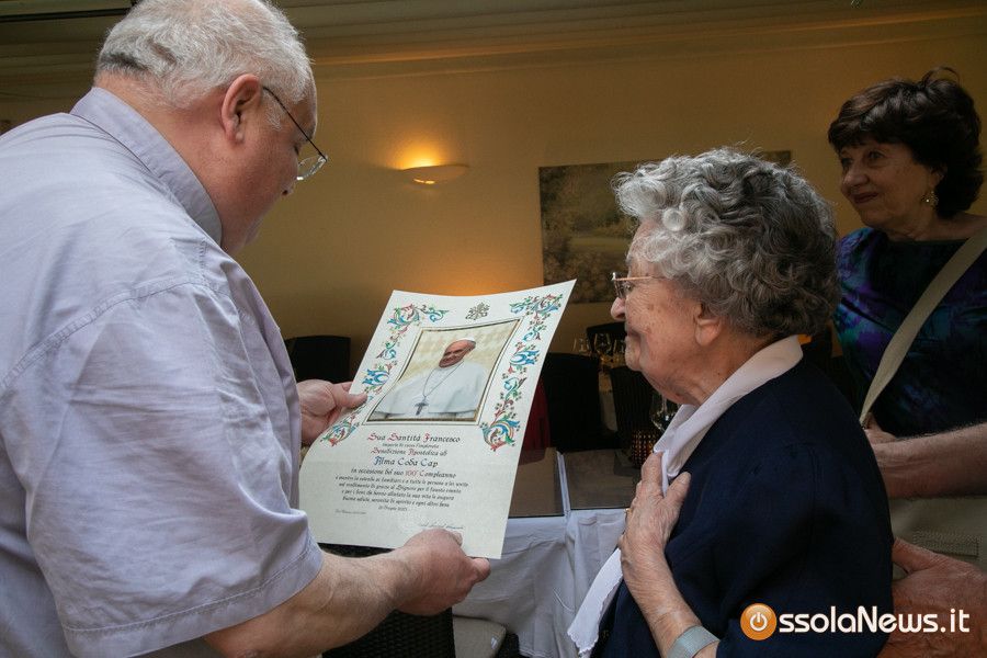 Ala Cap Borsotti, l'amata maestra delle scuole elementari di Bognanco San Marco e Domodossola domenica ha festeggiato l'invidiabile traguardo dei 100 anni. Fin dai tempi del dopoguerra, la maestra Borsotti ha impegnato gran parte della sua vita all'insegnamento. Alcuni dei suoi ex alunni domenica all'hotel Corona, hanno voluto rendere omaggio alla maestra, testimoniando il loro affetto e riconoscimento.