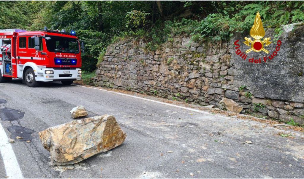 I vigili del fuoco del distaccamento di Domodossola sono stati chiamati per la caduta di un grosso masso sulla strada della Valle Bognanco.