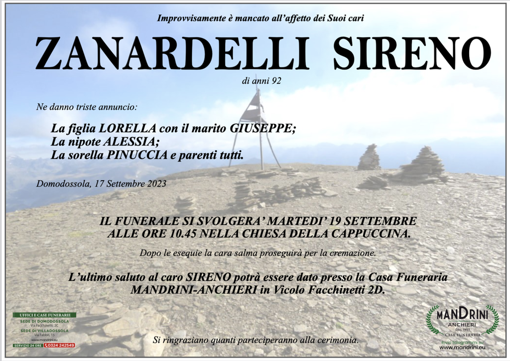 Zanardelli Sireno di anni 92
