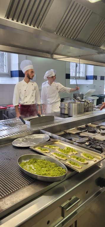 La mattina gli studenti si recano al ristorante, lo chef illustra il menu e vengono organizzate le brigate, proprio come nella cucina di un vero ristorante. Si prepara, si cucina, si organizza il pranzo per gli ospiti. C'è poi chi apparecchia e impara a preparare gli aperitivi.