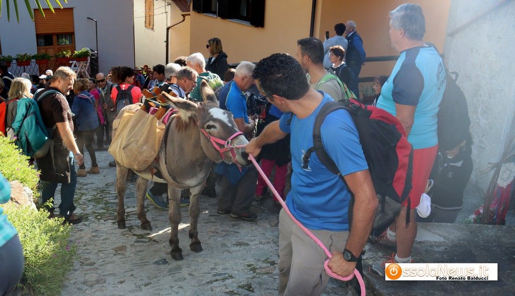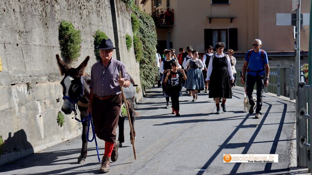 A precedere la carovana due asini guidati da due someggia tori, poi in testa il presidente del Cai di Villa, Renato Borggio, le donne in costume e la lunga scia di partecipanti.