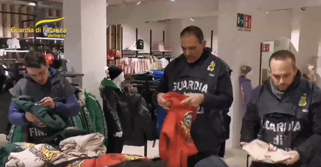 Pertanto, venivano deferiti alla Procura della Repubblica di Trani, competente per territorio, il legale rappresentante e l'amministratore di fatto/direttore commerciale della società pugliese per i reati di cui agli artt. 473 - Contraffazione, alterazione o uso di marchi o segni distintivi ovvero di brevetti, modelli e disegni e 474 C.P. Introduzione nello Stato e commercio di prodotti con segni falsi. La ricostruzione della filiera distributiva, mediante meticolosa analisi delle fatture elettroniche di vendita acquisite per il tramite del partner tecnologico Sosegi, portava ad individuare che la produzione autunno-inverno 2023 era stata quasi interamente destinata ad un megastore avente sede centrale a Milano, ma con 35 punti vendita in Lombardia, Emilia Romagna, Veneto, Lazio e Piemonte, fra i quali uno nel Verbano Cusio Ossola, da dove sono partite le investigazioni. La Procura di Trani, sulla base degli accertamenti condotti dal Reparto verbanese, disponeva il sequestro dei capi di abbigliamento contraffatti presso la sede della società produttrice nonché presso i punti vendita della catena cliente.