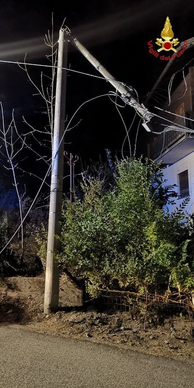 La pianta, di oltre trenta metri, precipitando al suolo ha investito un palo della rete di distribuzione dell'energia elettrica.