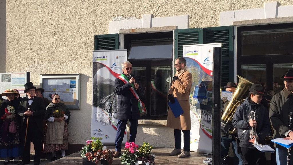 Temperature fredde per una mattinata che si è scaldata grazie al clima festoso che ha contraddistinto l’importante ricorrenza. Oggi cade infatti il centenario della Ferrovia Vigezzina Centovalli. Una giornata importante che si è aperta con le celebrazioni ufficiali a Santa Maria Maggiore, con l’arrivo in stazione alle 9.39 del “Treno delle 4 stagioni” seguito dai saluti istituzionali e quindi alle 10 lo scoprimento della targa commemorativa.