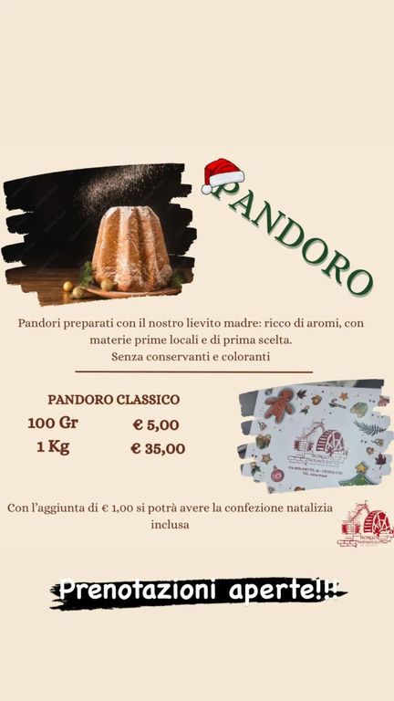 Non solo panettoni e pandori da regalare o da portare sulle tavole imbandite: il Ristorante "Borgo Molinetto" è aperto per tutte le festività con la sua cucina a km zero. Offre anche il servizio di catering e d'asporto, anche per eventi aziendali.
