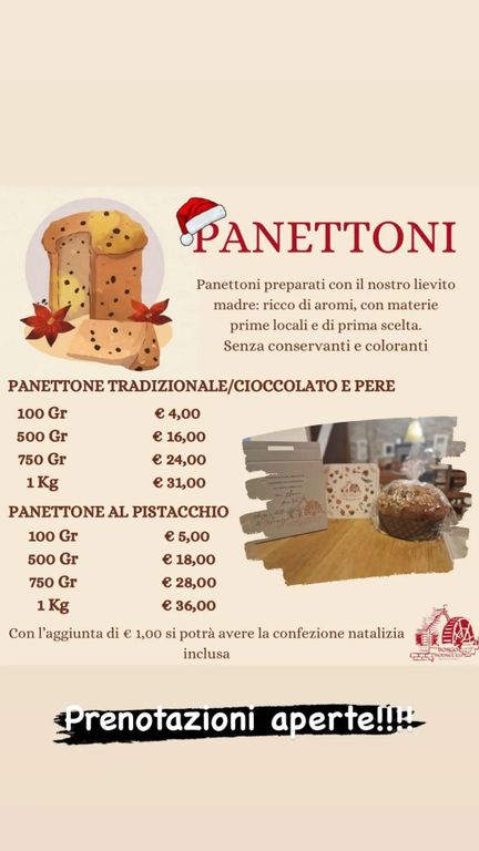 Pandori e panettoni sono confezionati in scatole personalizzate e disponibili nelle versioni da 100 grammi, 500 grammi, 750 grammi e 1 kg.