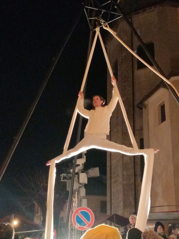 Il “Flash Christmas Mob” ha dato il via ai Mercatini di Santa Maria Maggiore. Tantissima gente in piazza per la serata inaugurale con musica, giocoleria, luci e fuoco, esibizioni aeree e volanti per un flash mob natalizio che ha coinvolto tutta Piazza Risorgimento.