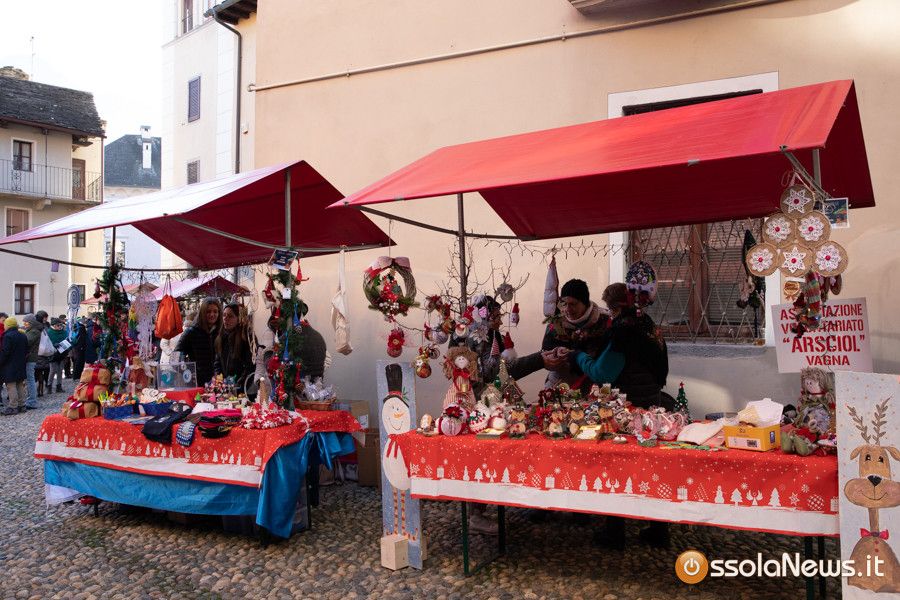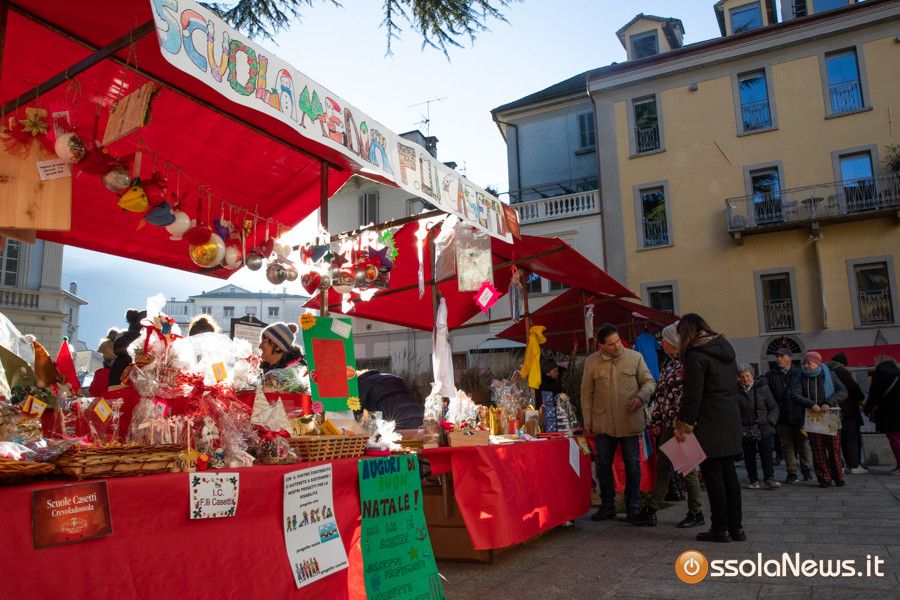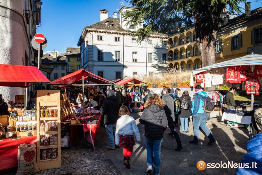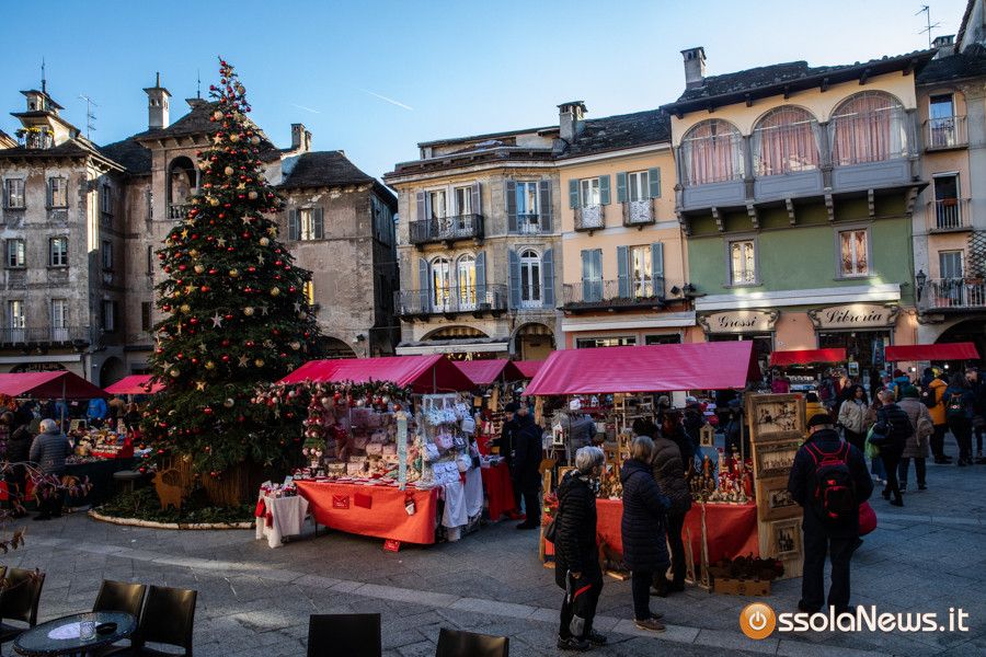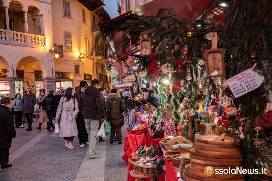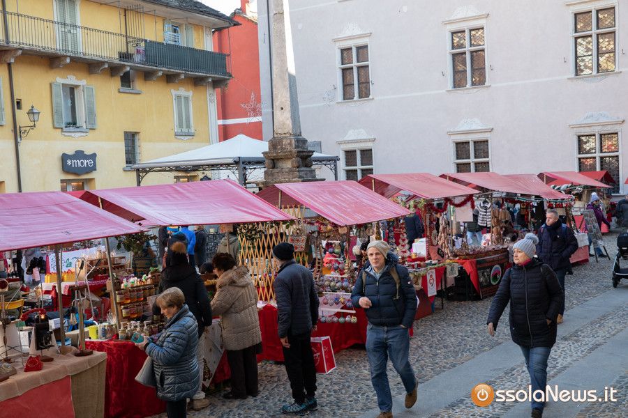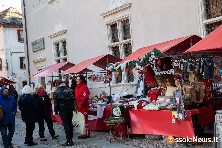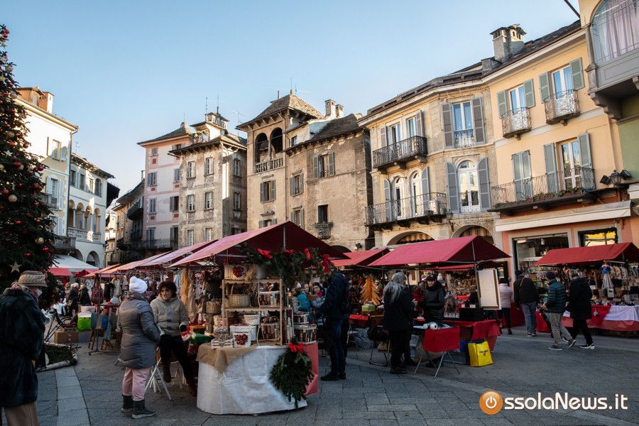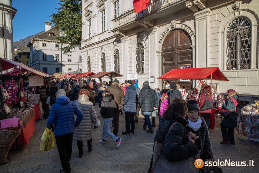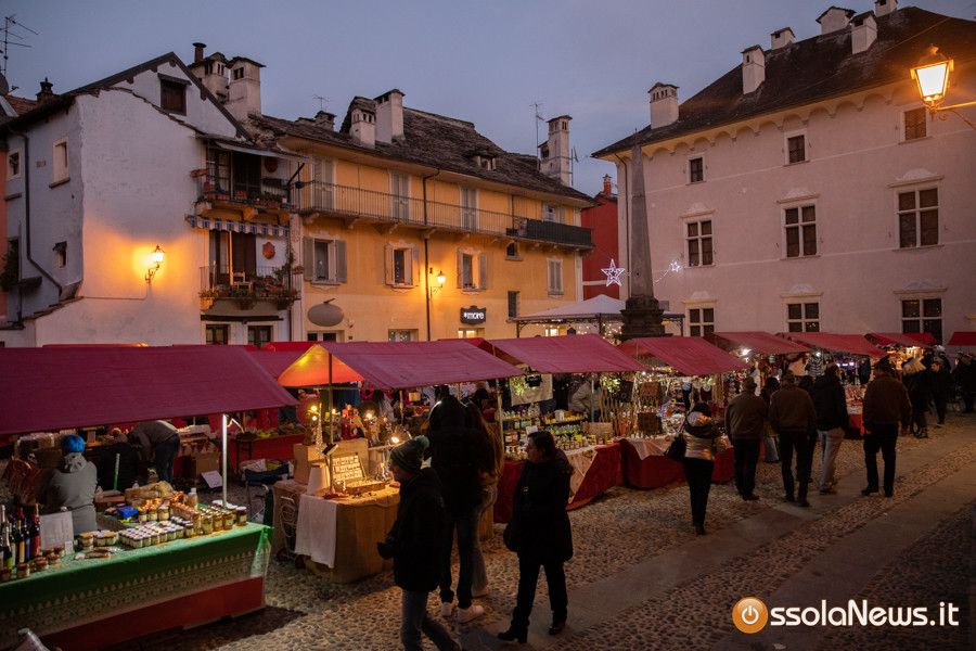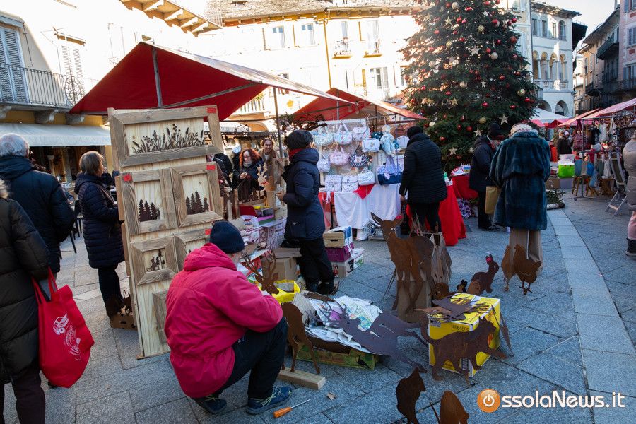 Una tiepido sole e una piacevole temperatura hanno accompagnato la prima giornata dei Mercatini di Natale di Domodossola. In piazza Mercato, piazza Chiesa, piazza Chiossi e nelle altre vie del borgo domese le bancarelle dai tetti rossi hanno ospitato 165 espositori tra hobbisti, artigiani, produttori, che hanno proposto tante idee regalo originali, manufatti, prodotti tipici e prelibatezze varie.