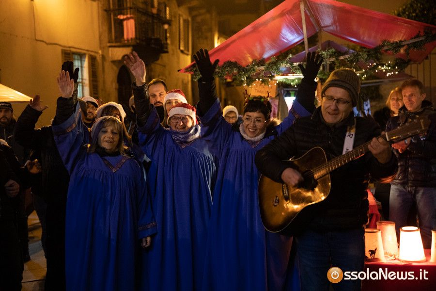 Molte le persone che durante tutta la giornata hanno passeggiato tra le bancarelle, ma è con il calare del sole e l'arrivo del buio che il centro storico è diventato ancora più suggestivo con le luci calde a illuminare i palazzi medievali, il grande albero scintillante in piazza Mercato e le luci delle casette e le luminarie dei negozi.