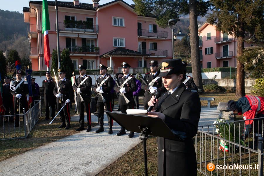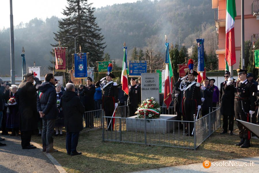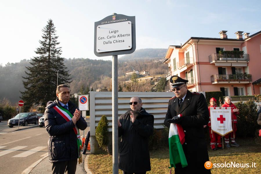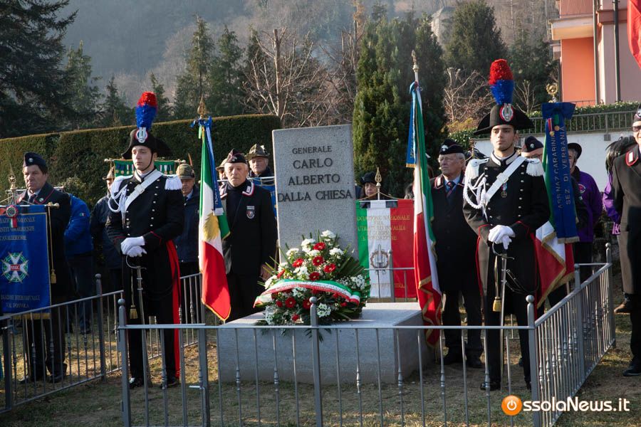 Tanta gente, molti studenti, componenti di associazioni e forze dell’ordine hanno partecipato stamattina alla cerimonia ufficiale che ha visto anche gli interventi del tenente colonnello Giovanni Della Sala del comando carabinieri di Verbania, del viceprefetto Giorgio Orru e del brigadiere in pensione Cataldo Santoro, che per un periodo fece da scorta al generale Dalla Chiesa.
