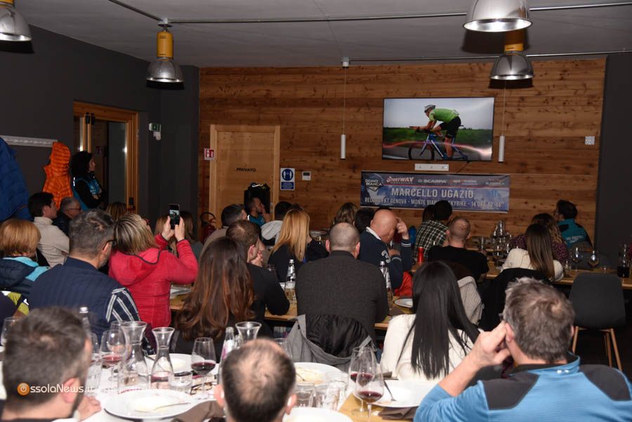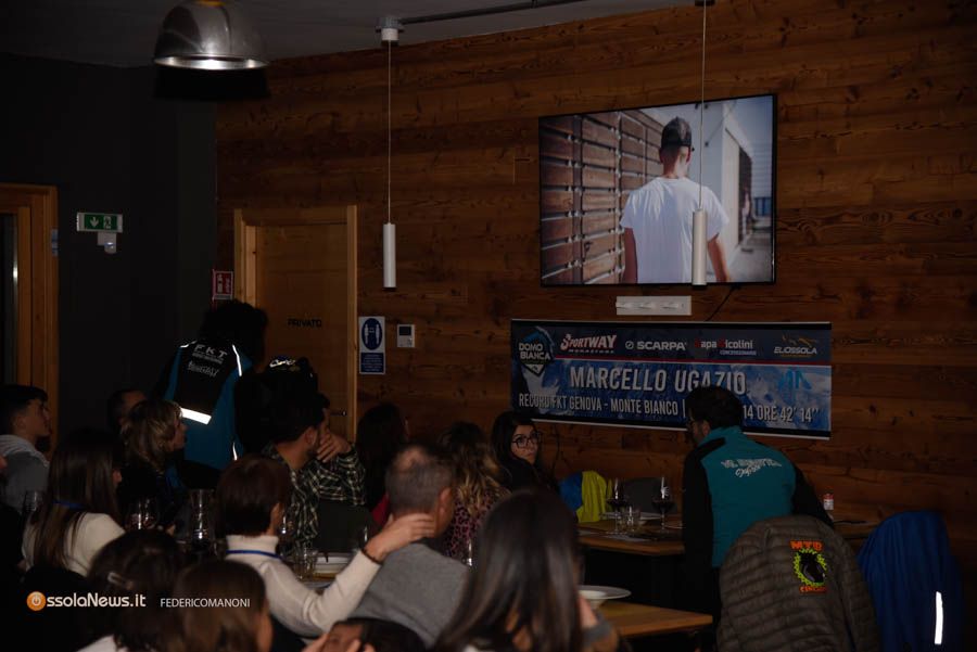 Grande partecipazione sabato 20 gennaio alla cena evento per la prima proiezione del docu-film "FKT - Genova Monte Bianco" svoltasi alla Baita Motti presso il comprensorio di Domobianca 365. Oltre 130 persone presenti ad omaggiare l'impresa di Marcello Ugazio, il grande atleta galliatese d'origine e ossolano di adozione, che nel mese di luglio ha stabilito il nuovo record FKT Genova Monte Bianco in 14 ore 42 minuti e 14 secondi.
