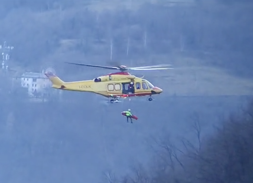 L'equipaggio lo ha recuperato con il verricello e lo ha trasportato alla piazzola di via Piave prima di consegnarlo ai sanitari di un'ambulanza che lo ha trasportato al San Biagio.