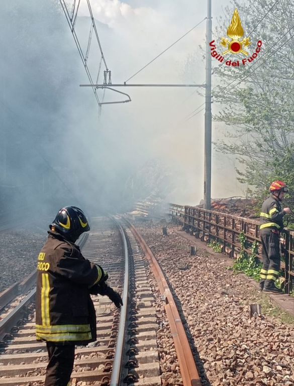 Intervento dei vigili del fuoco di Verbania nel pomeriggio per un incendio bosco nel comune di Mergozzo in località "La Rustica" nelle vicinanze della ferrovia.