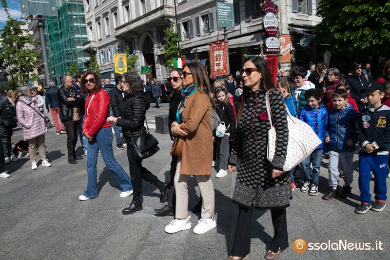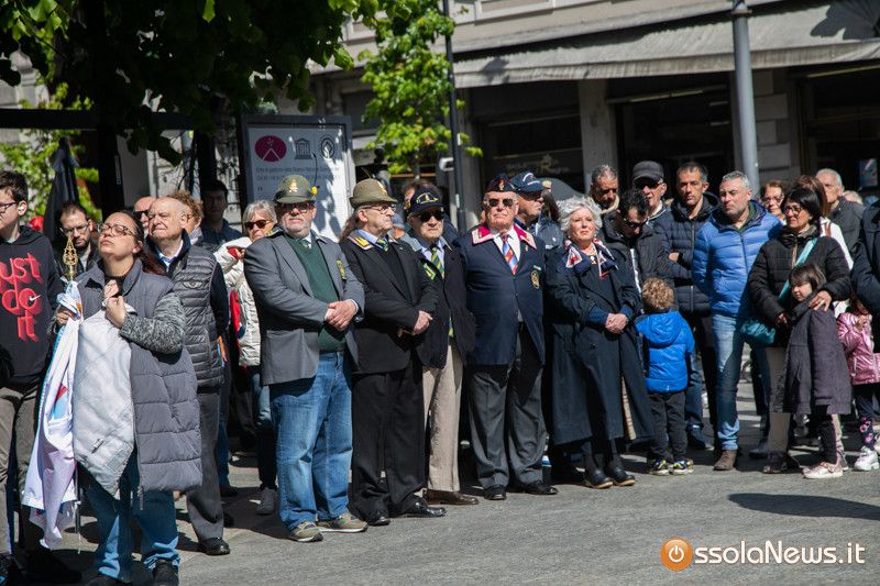 “Se voi volete andare in pellegrinaggio nel luogo dove è nata la nostra Costituzione, andate nelle montagne dove caddero i partigiani, nelle carceri dove furono imprigionati, nei campi dove furono impiccati. Dovunque è morto un italiano per riscattare la libertà e la dignità, andate lì o giovani, col pensiero, perché li è nata la nostra Costituzione”. Citando questa famosa frase di Pietro Calamandrei il sindaco Lucio Pizzi ha concluso il suo intervento ufficiale per il 79° anniversario del 25 aprile. Una manifestazione particolarmente partecipata quella che si è svolta a Domodossola in piazza Matteotti. Autorità civili e militari, gonfaloni, associazioni di reduci, Anpi, ma anche le scuole cittadine con in rappresentanza insegnanti, dirigenti e alunni, e tanti cittadini. In molti hanno voluto prendere parte alle celebrazioni della Festa della Liberazione organizzata dal Comune di Domodossola.
